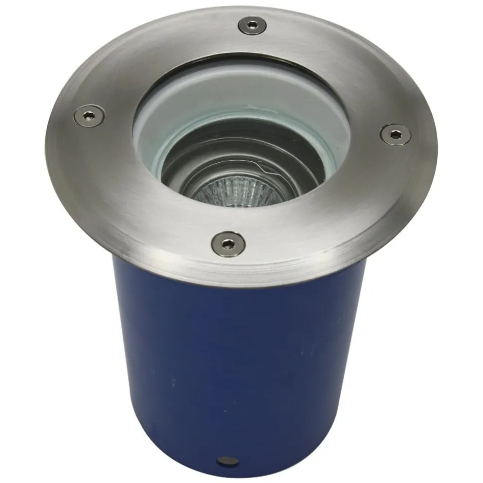 25° zwenkbare grondspot inbouwlamp voor buiten De roestvrijstalen grondspot inbouwlamp is perfect voor het verlichten van buitenruimtes of -objecten. De spot bestaat uit een gegoten aluminium behuizing met een roestvrijstalen plaat en een kunststof installatiehuls. Een lamp van 35 watt wordt meegeleverd. De installatiediameter is 14,5 cm. Opmerking: Bij het installeren van grondspot inbouwlampen moet worden gezorgd voor een goede afwatering en een geschikt grindbed. Installeer niet in holtes en kuilen! Er mag zich geen water op de lamp kunnen verzamelen.