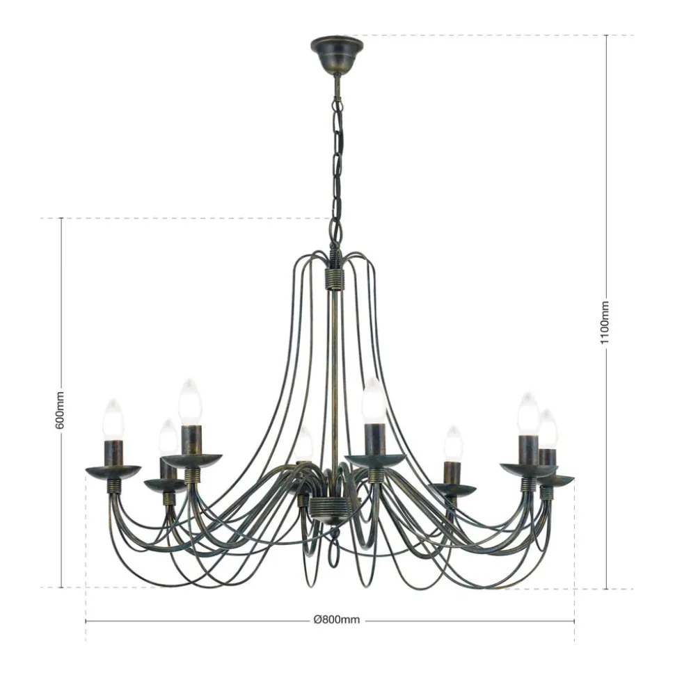 Grote 8-lichts kroonluchter CLARA in landhuisstijl