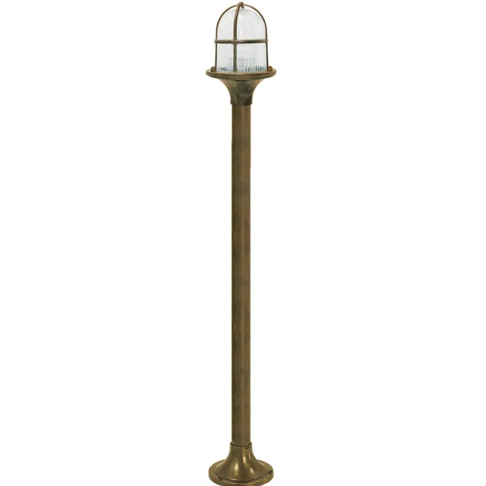 Eenvoudige padlamp Ocean van messingDe padlamp Ocean biedt degelijke verlichting voor buiten. Het messing frame biedt een hoge stabiliteit en een goede ondersteuning voor het grote glas. Dit is transparant en laat het licht royaal ontsnappen, waardoor het armatuur zeer geschikt is als padverlichting. Volgens de naam doet het ontwerp denken aan lampen uit de maritieme sector.
