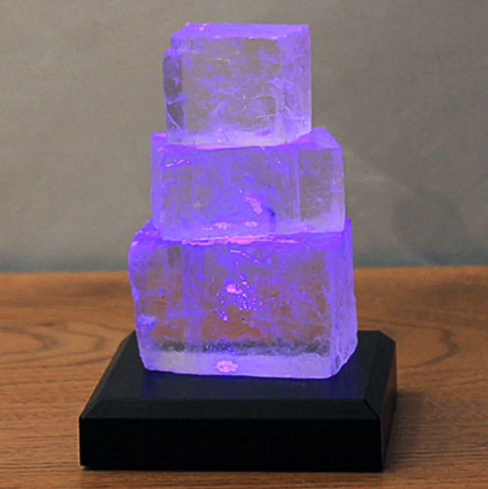 Indrukwekkende tafellamp Halit-Turm in originele vorm De natuurlijkheid van de tafellamp wordt bepaald door de oorspronkelijke kubusachtige vorm van de stenen, die kenmerkend is voor zoutsteen. Hun typische helderheid komt ook tot zijn recht bij Halit-Turm. Fraai gestapeld en geplaatst op een zwart plateau komt het betoverende totaalbeeld samen. Het platform verbergt de kleurrijke kleine lichtbronnen die de armatuur van onderaf verlichten. De kijker kan zich verheugen op een sfeervolle kleurverandering en wordt geboeid door deze effecten. Als dit nog te spannend voor u is, vindt u volledige ontspanning in de milde gloed van slechts één kleur, die u via een overeenkomstige functie kunt selecteren. Halit Tower werkt op batterijen en biedt daardoor onbeperkte vrijheid van vormgeving, want de tafellamp kan door zijn formaat ook overal een plaats vinden.