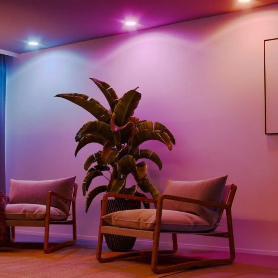 Smart 4,9 W GU10 LED reflectorlamp – RGBW kleurverandering, geschikt voor Wi-Fi en Matter, te bedienen via App en met spraakopdrachten Voor de integratie en slimme bediening van deze LED lamp van Hama is geen Bridge nodig. Die reflectorlamp GU10 kan direct via een Wi-Fi-verbinding worden aangestuurd met de gratis Hama Smart Home App. Die kan ook worden bediend met spraakopdrachten (Google Assistant, Amazon Alexa of Apple Siri) en geïntegreerd in elke Matter-compatibele App, waardoor de Matter Smart Home-lamp kan worden in- en uitgeschakeld en traploos kan worden gedimd. Die lichtkleur kan naar wens worden aangepast van warmwit tot daglicht en in maximaal 16 miljoen kleurgradaties. Tijdgestuurd en automatisch schakelen is mogelijk dankzij timers die via de App kunnen worden ingesteld, en meerdere Home producten kunnen ook samen of in groepen worden bediend.