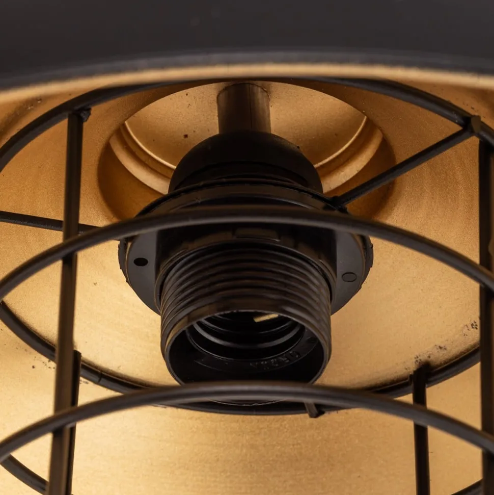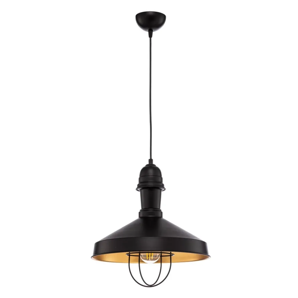 De hanglamp AV-4106-M25-BSY combineert robuust ijzer en hoogwaardig metaal in een fascinerend ontwerp dat met de kooischerm een vleugje industriële charme in elke ruimte brengt. De combinatie van zwarte en antiegouden kleuren geeft de lamp een tijdloze elegantie die zowel in de eetkamer als in de woonkamer of keuken accenten legt.