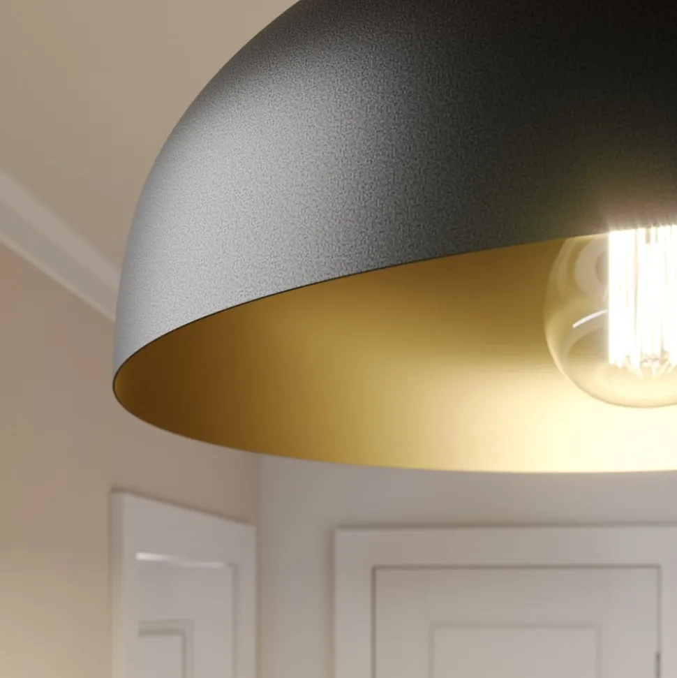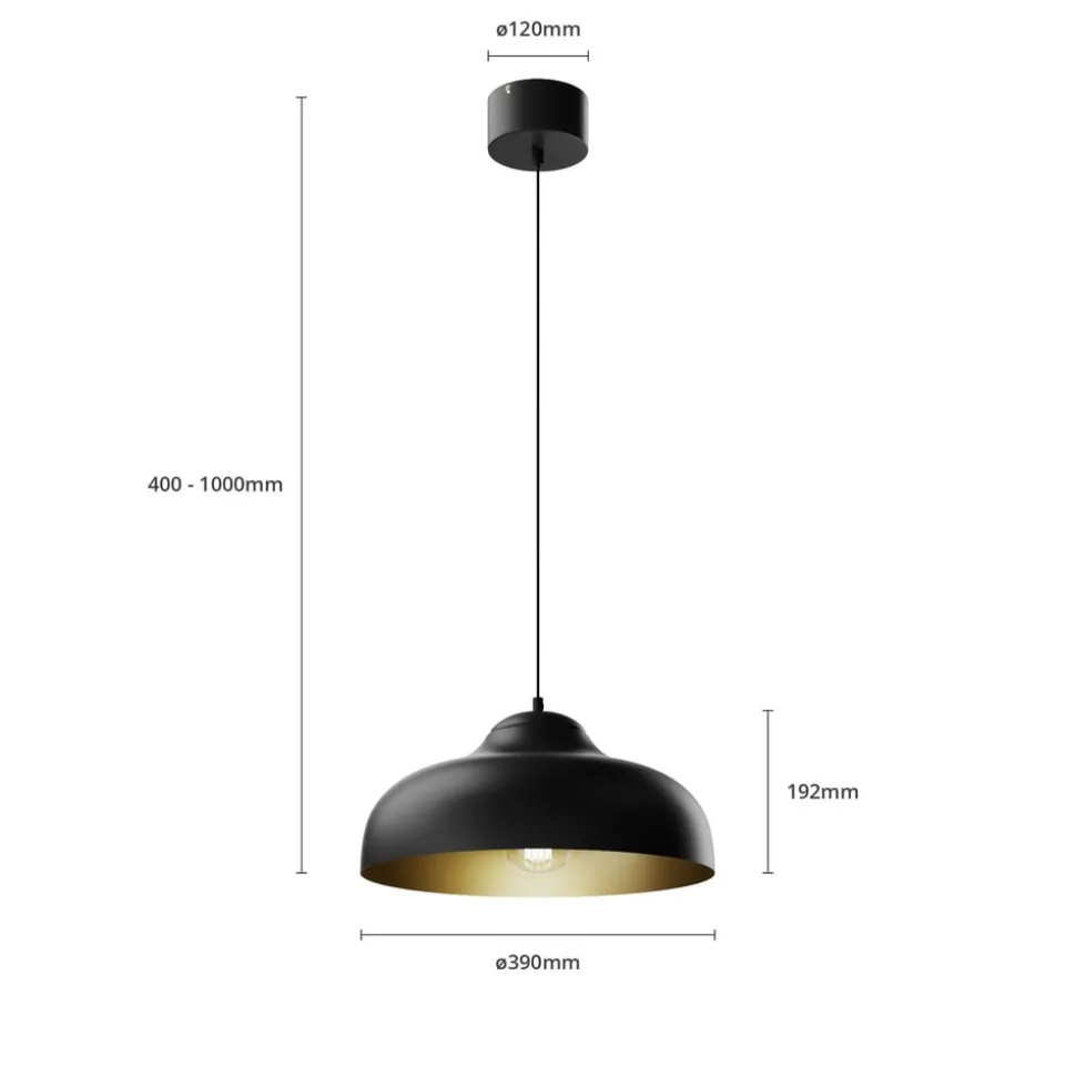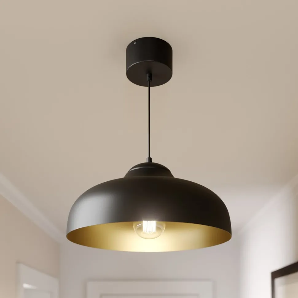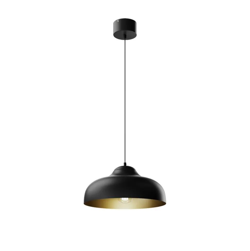 De hanglamp Basca maakt indruk met zijn moderne design en de contrasterende combinatie van zwart metaal en een gouden binnenkant. Deze stijlvolle verlichtingsoplossing past naadloos in verschillende woonruimtes, zoals de woonkamer, keuken of eetkamer, en geeft elke ruimte een bijzondere sfeer. De hoogwaardige afwerking van het metaal zorgt voor duurzaamheid en stabiliteit, terwijl de gouden binnenkant het licht op een warme en uitnodigende manier weerkaatst.