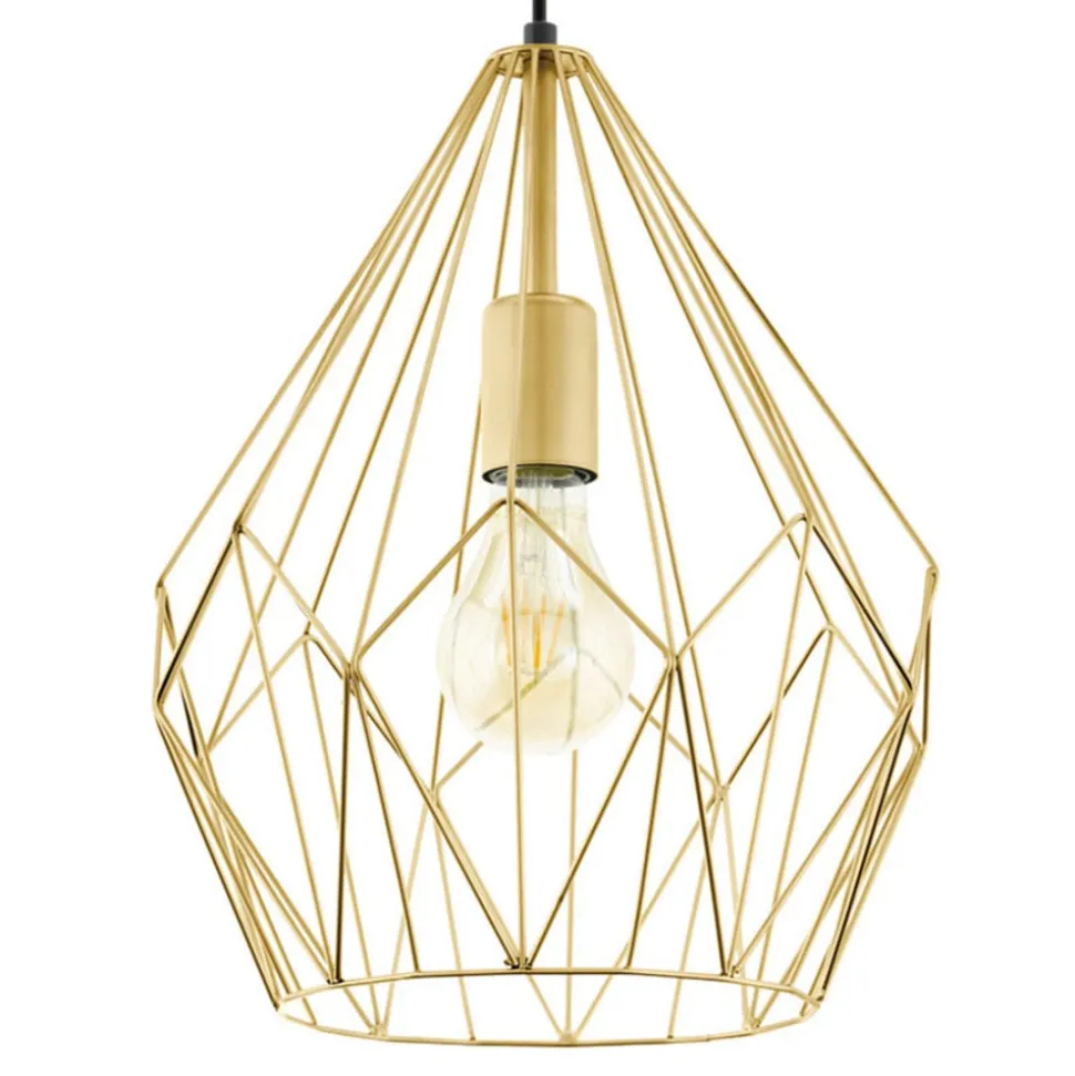 De metalen onderdelen van de Carlton hanglamp zijn gelakt in een edele tint goud, wat de armatuur een vleugje exclusiviteit geeft. De open, kooiachtige kap van de armatuur bestaat uit fijne metalen stangen die tot een grafische structuur zijn samengevoegd. Boven een tafel in de woon- of eetkamer of zelfs in de keuken ziet de pendelarmatuur er niet alleen goed uit, ze zorgt ook voor algemene verlichting rondom. Het ziet er bijzonder decoratief uit met een gloeilamp in globevorm en gloeidraadlook.