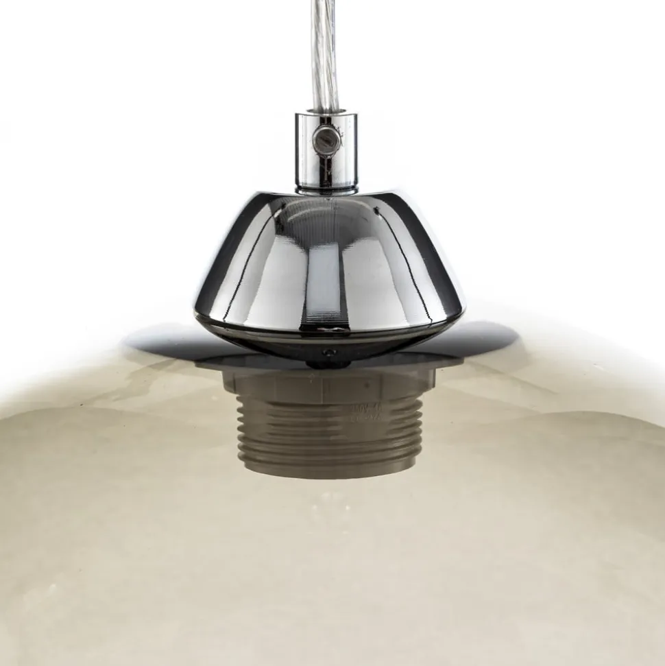 De hanglamp Colour met zijn grafietgrijze glazen kap combineert een modern design met hoogwaardige materialen zoals glas en staal. Deze lamp is een blikvanger in elke woonkamer, eetkamer of keuken en geeft de ruimte een elegante uitstraling. De combinatie van grafietgrijs transparant glas en chromen accenten zorgt voor een tijdloze esthetiek die naadloos in verschillende interieurstijlen kan worden geïntegreerd.