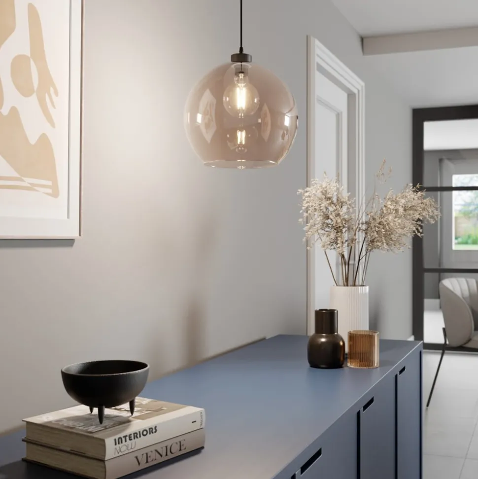 De hanglamp Cubus combineert een modern design met hoogwaardige materialen zoals glas en metaal voor een stijlvolle verlichtingsoplossing. Met zijn elegante kleuren in zwart en amber past hij naadloos in verschillende interieurconcepten en creëert hij een warme, uitnodigende sfeer. De lamp is ideaal voor woonkamers, keukens en eetkamers en zorgt daar voor stijlvolle accenten.