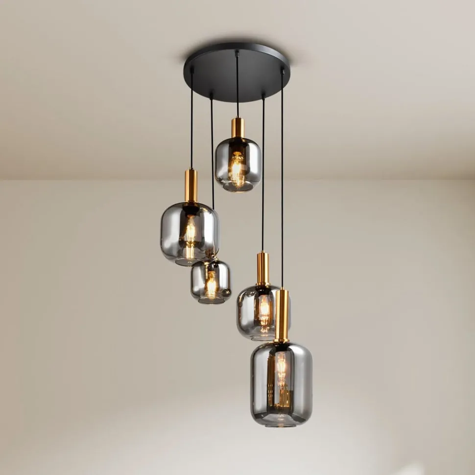 Hanglamp Fumo, rookglas, 5-lamps, rondel