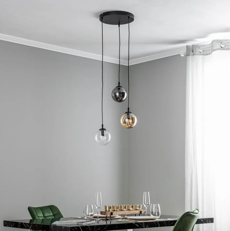 De hanglamp Glassy, gemaakt van hoogwaardig gepoedercoat staal en edel glas, combineert modern design met functionele veelzijdigheid. De combinatie van grafiet, amber en heldere glaselementen zorgt voor een fascinerend lichtspel dat elke ruimte een bijzondere sfeer geeft. Of het nu in de woonkamer of eetkamer is, deze lamp zet stijlvolle accenten en past harmonieus in verschillende interieurstijlen.