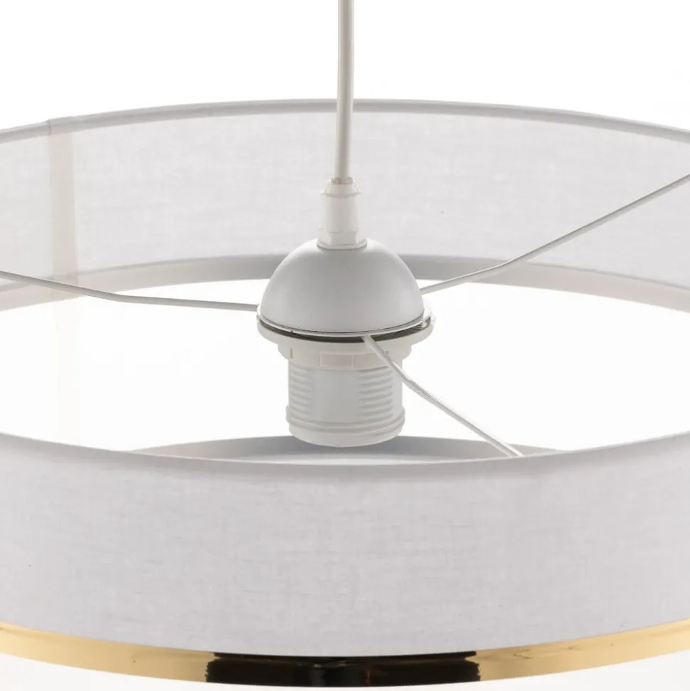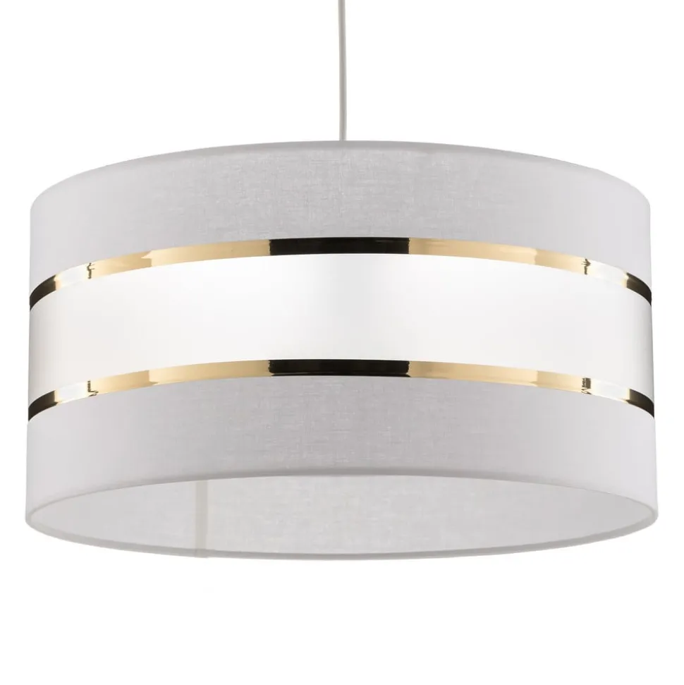 De hanglamp Helen combineert een modern design met hoogwaardige materialen zoals ijzer, stof en kunststof. De textielkap in wit en goud geeft elke ruimte een elegante uitstraling en zorgt voor een harmonieuze lichtverspreiding. Deze lamp is ideaal voor woon-, slaap- en eetkamers en past moeiteloos in verschillende interieurstijlen.