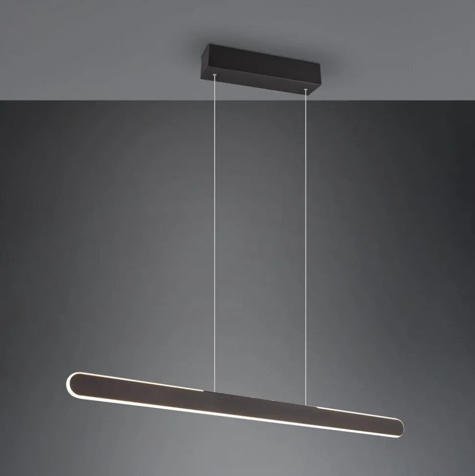 Helios LED hanglamp met dubbelzijdige lichtverdeling, in hoogte verstelbaar, dimbaar, CCT De Helios LED hanglamp is een absoluut moderne lichtbron voor woon- en eetkamers, zowel visueel als functioneel. De metalen behuizing is uitgerust met doorlopende LED-strips die een aangenaam licht naar boven en beneden creëren. De geïntegreerde LED’s bevinden zich achter gesatineerde kappen, die het licht verspreiden zonder te verblinden. De hanglamp kan eenvoudig in hoogte worden versteld en kan worden bediend met een aanraakschakelaar op de bovenkant van de kap. Zowel de lichtkleur als de helderheid kunnen hiermee worden aangepast.