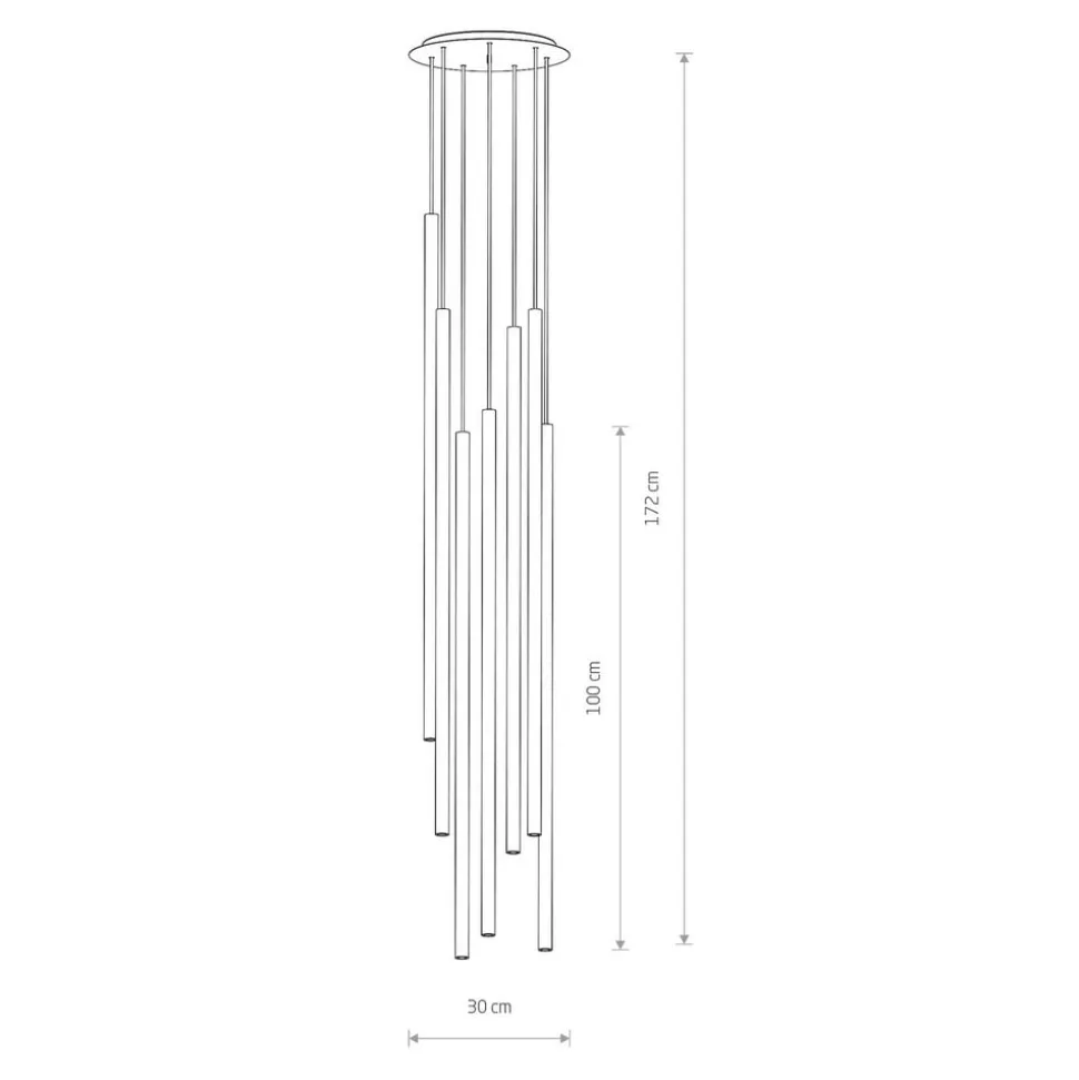 Een bijzonder kenmerk van deze lamp is de mogelijkheid om hem te dimmen met een externe dimmer, waardoor de lichtintensiteit flexibel kan worden aangepast. De in Europa vervaardigde hanglamp staat voor kwaliteit en vakmanschap. De zeven lichtbronnen zorgen voor een gelijkmatige en aangename verlichting, die zowel geschikt is voor gezellige avonden als voor inspirerende momenten.