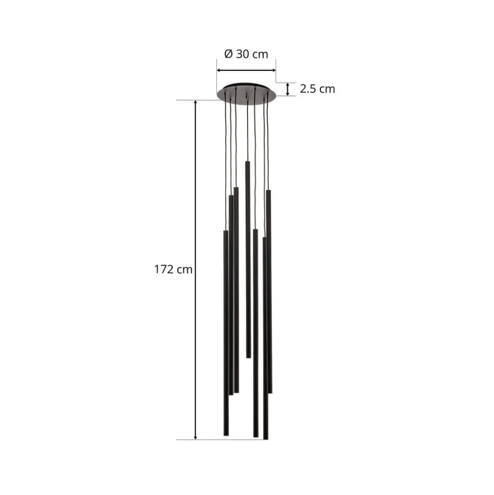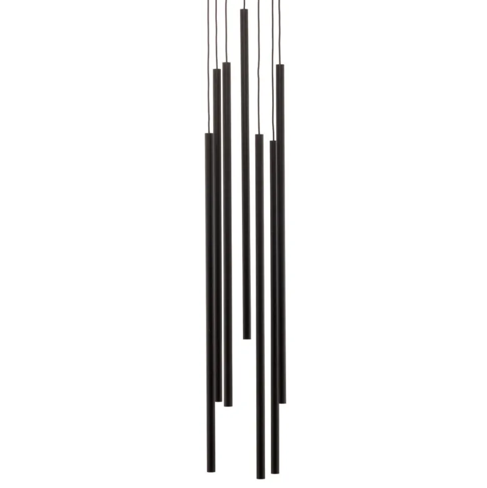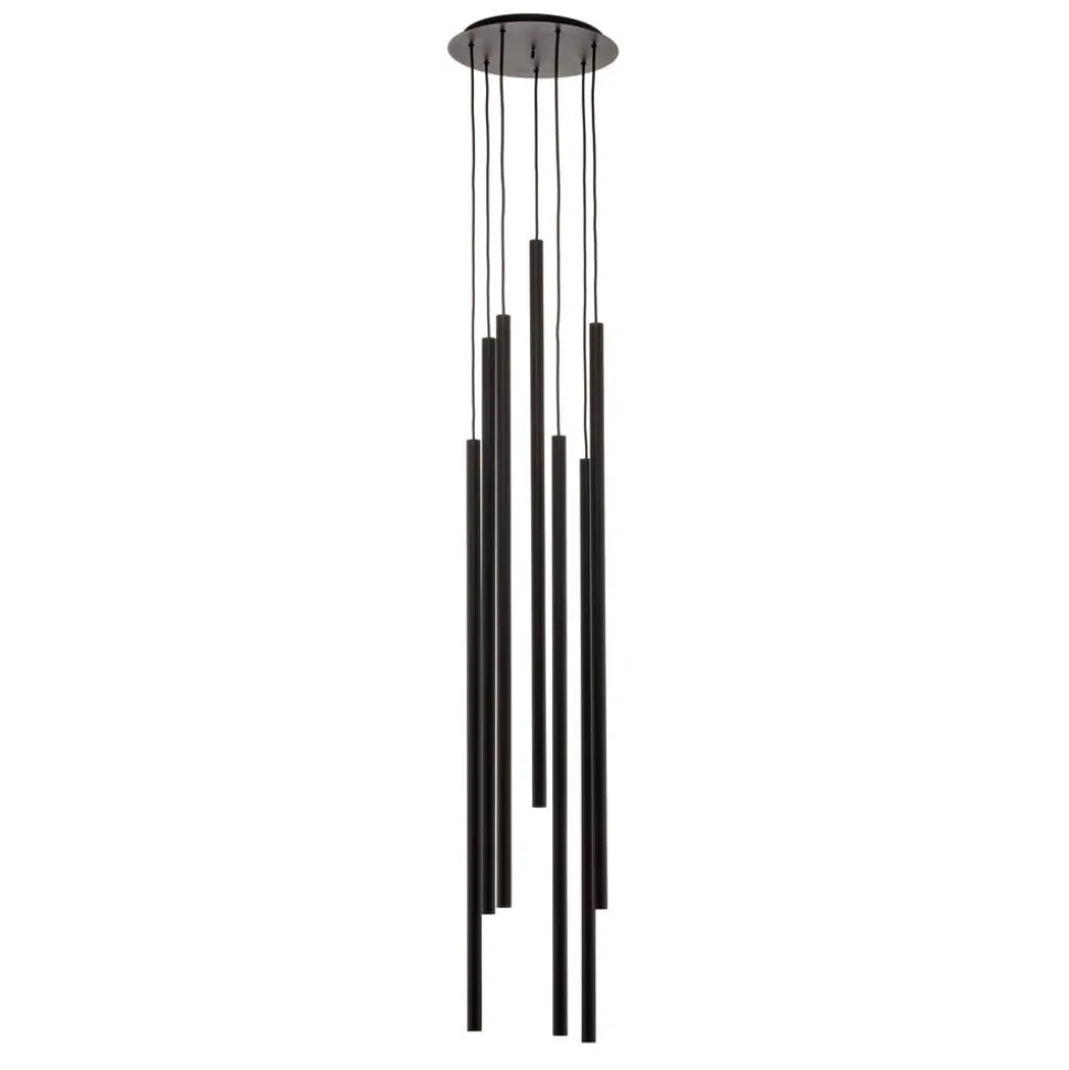 De hanglamp Laser, 7-lamps, zwart, combineert modern design met functionele verlichting. Deze lamp is gemaakt van hoogwaardig gelakt staal en vormt een stijlvolle aanvulling op uw woon- en eetkamer. De zwarte kleur geeft de ruimte een tijdloze elegantie en past naadloos in verschillende interieurstijlen.