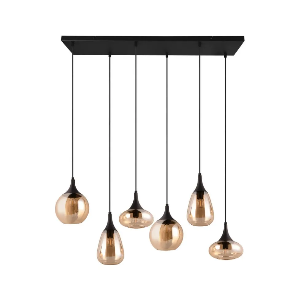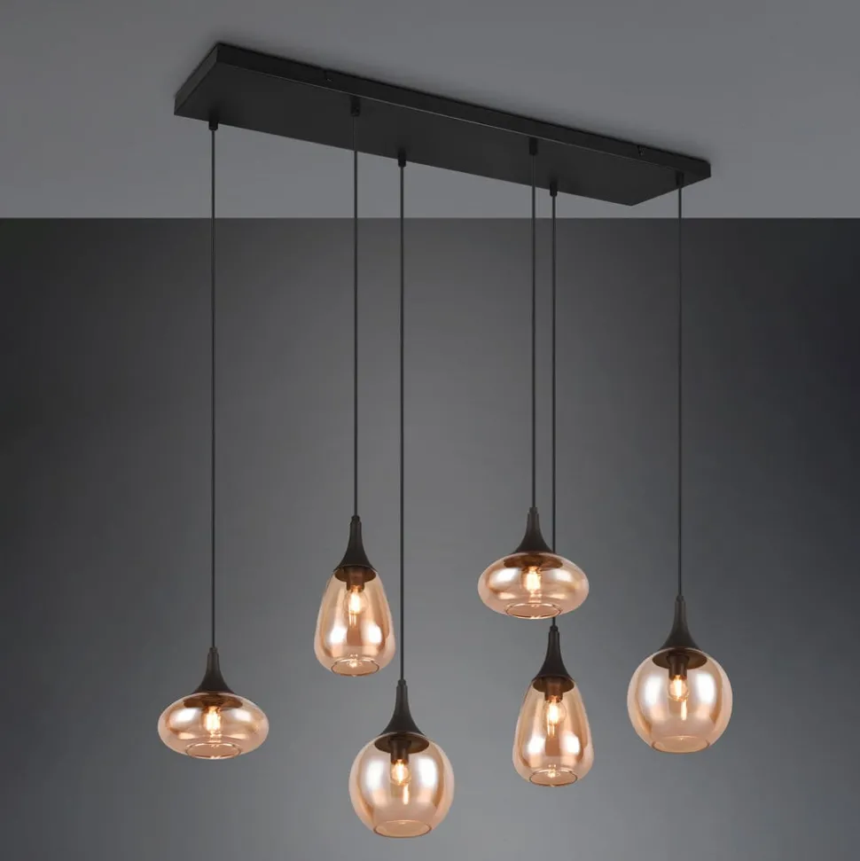 Hanglamp LUMINA, 6-lamps, zwart/oranje, glas
