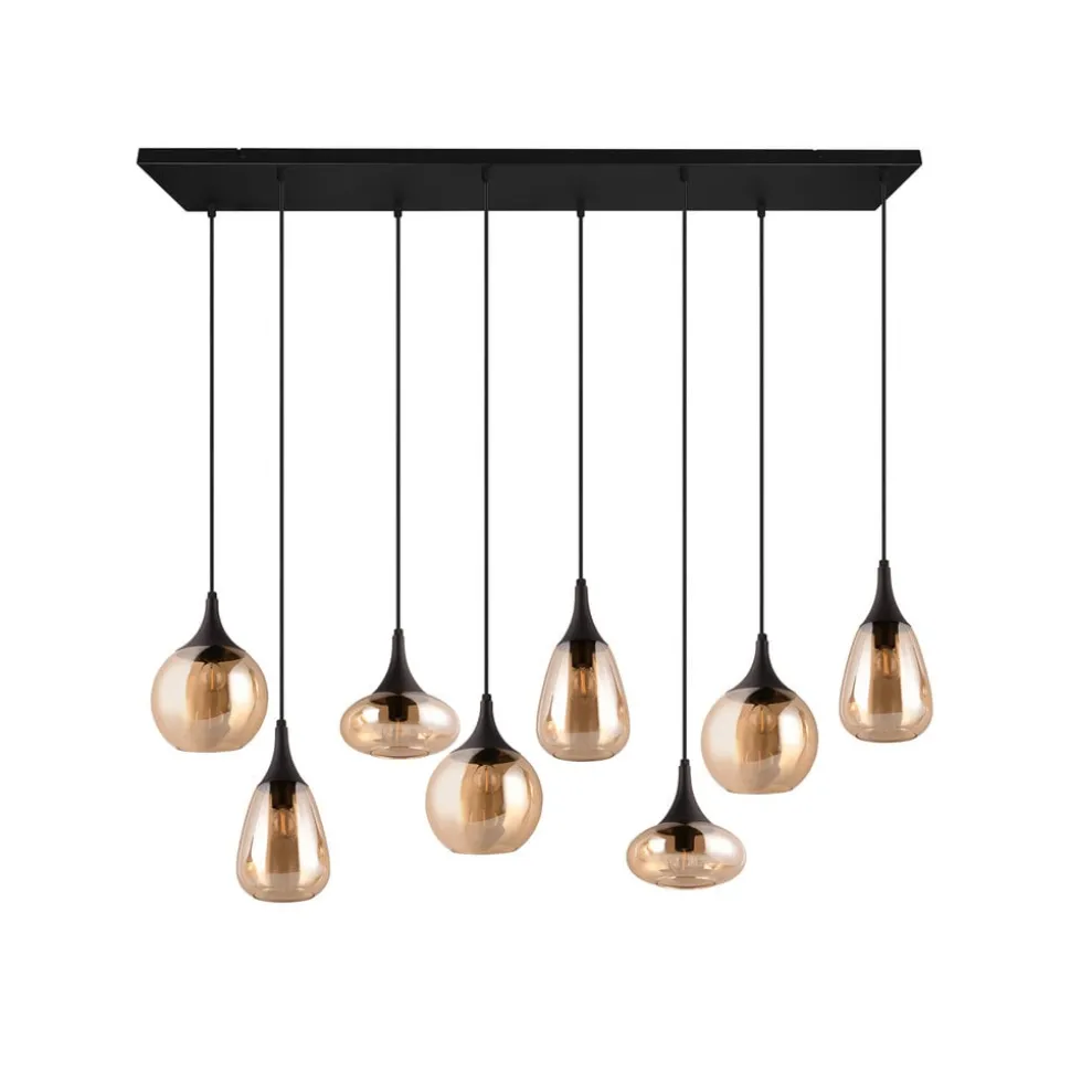 Hanglamp LUMINA, 8-lamps, zwart/oranje, glas
