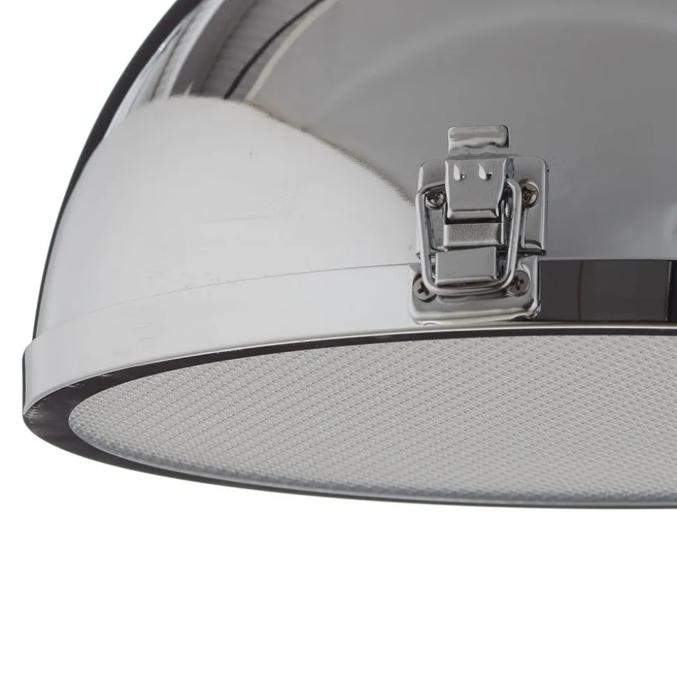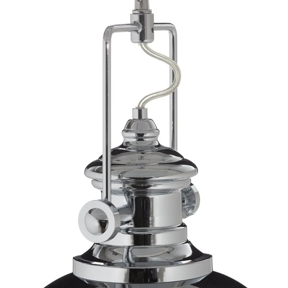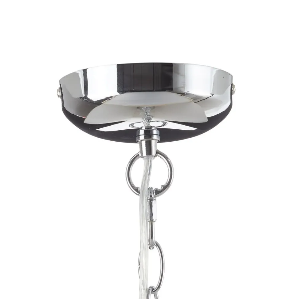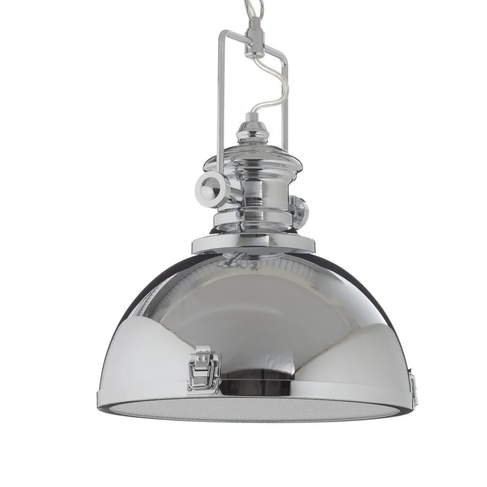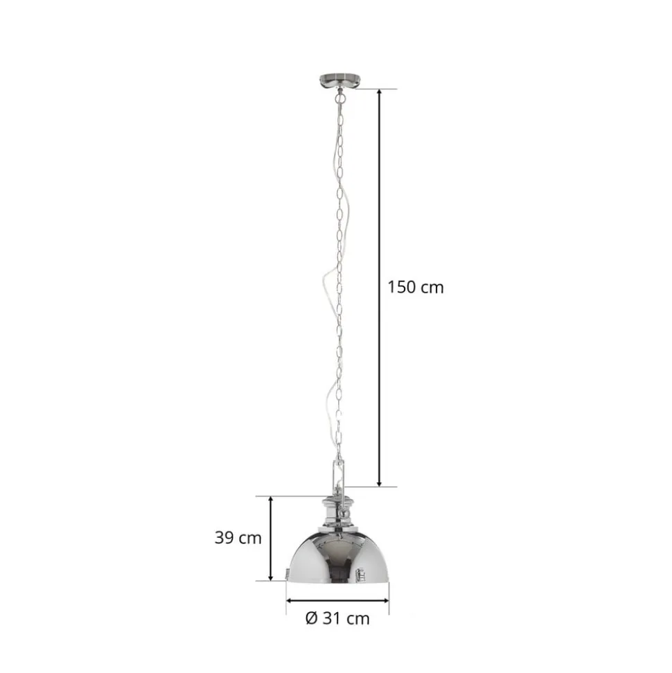 Hanglamp Metal: 1-lamp lichtbron in een industriële Stil Deze extreem robuuste hanglamp past bijvoorbeeld uitstekend bij een inrichting met een industrieel geïnspireerd design. Die algemene look van Metal wordt gekenmerkt door de technische affiniteit van de ontwerper – de Ideal lichtbron voor bijvoorbeeld een Loft. De glanzend verchroomde metalen kap eindigt met een acrylschijf waardoor het licht naar beneden wordt uitgestraald. De stevige kettingophanging benadrukt de industriële Look.