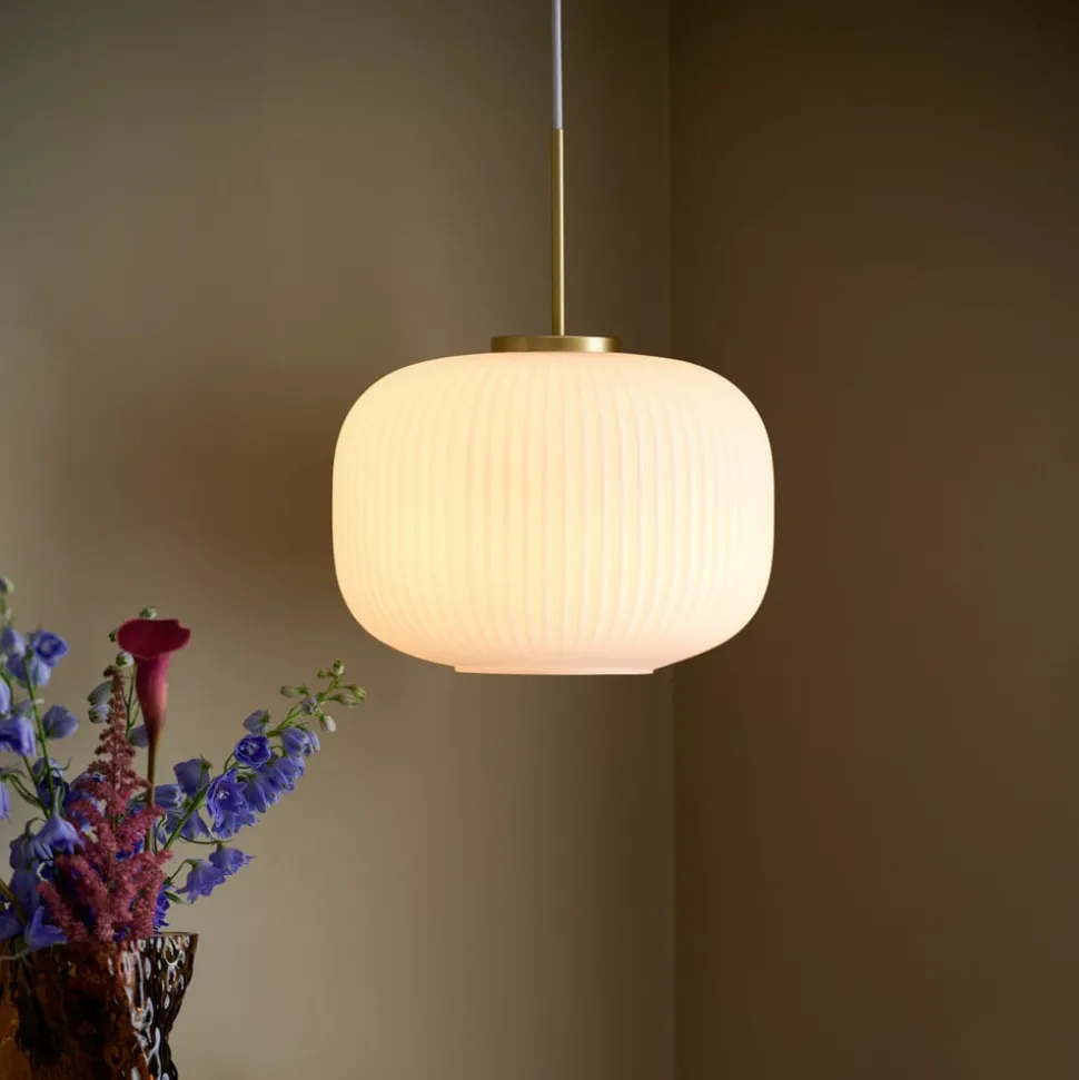 Hanglamp Milford, opaalwit/messing, Ø 30 cm