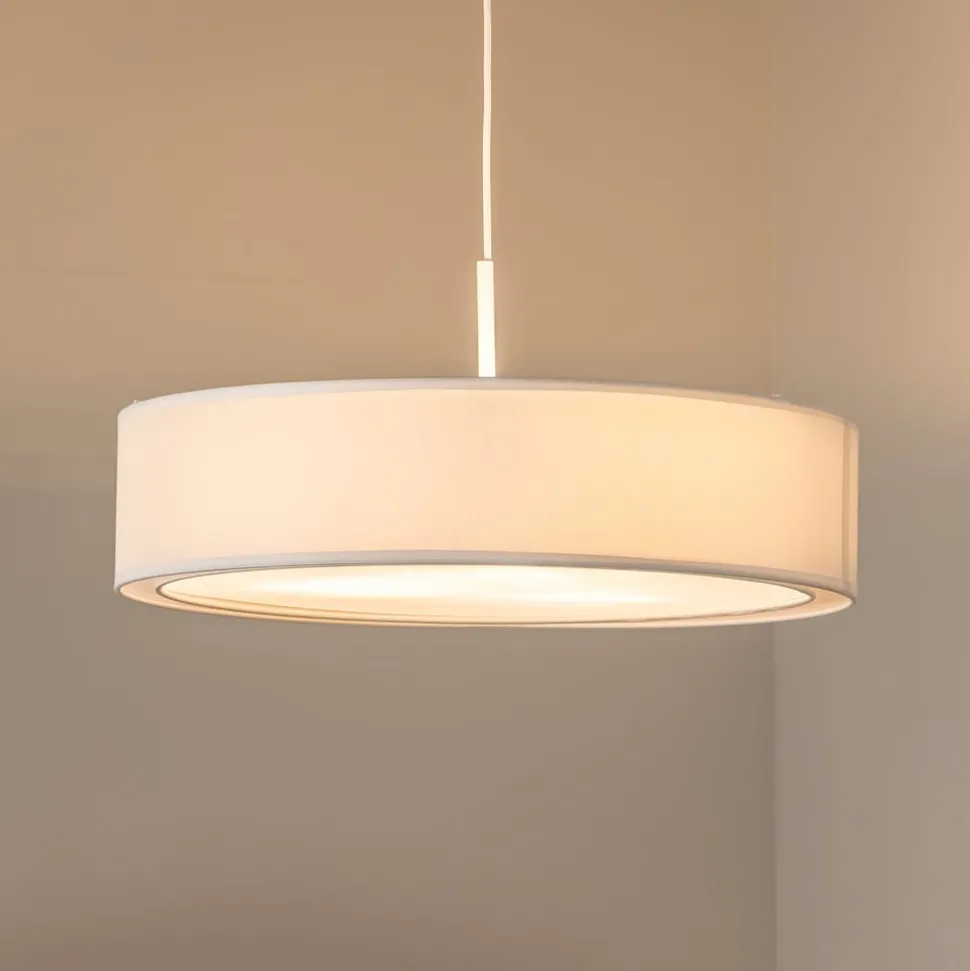 De hanglamp Mist combineert een tijdloos design met functionele veelzijdigheid en wordt zo een blikvanger in elke woon- of eetkamer. De lamp is gemaakt van hoogwaardig textiel en kunststof en straalt in een elegant wit dat harmonieus past in verschillende interieurstijlen. De in Europa vervaardigde lamp overtuigt door zijn zorgvuldige afwerking en het gebruik van eersteklas materialen die duurzaamheid en kwaliteit garanderen.