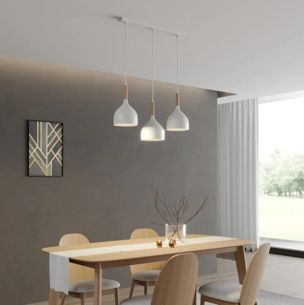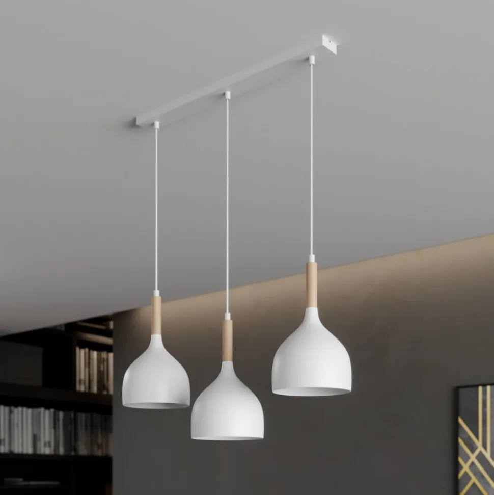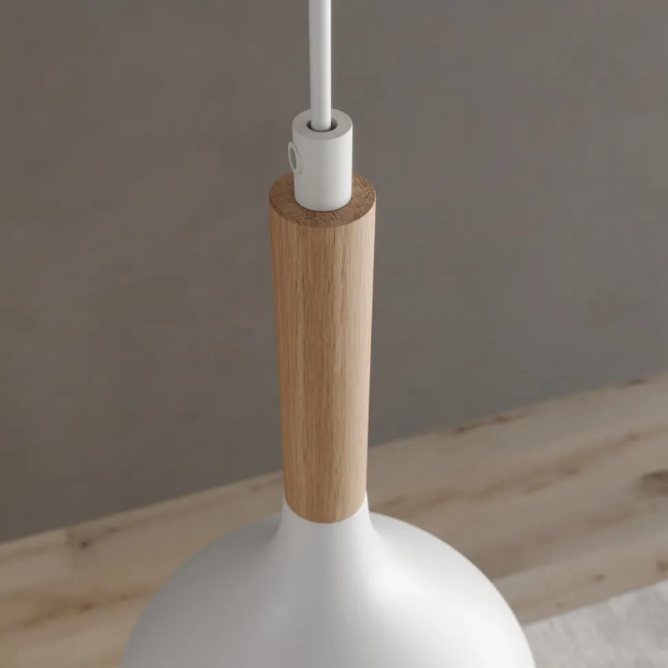 De hanglamp Noak is een stijlvolle verlichtingsoplossing die modern design combineert met natuurlijke elementen. De lamp is gemaakt van hoogwaardig metaal en hout en past naadloos in verschillende interieurconcepten. Hij zorgt voor elegante accenten in zowel de woonkamer als de keuken of eetkamer. De combinatie van wit en licht hout geeft de lamp een tijdloze uitstraling die zowel in moderne als klassieke interieurs tot zijn recht komt.