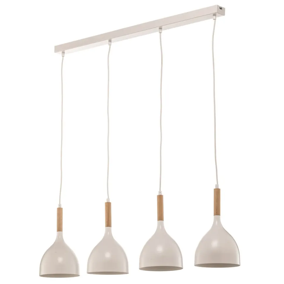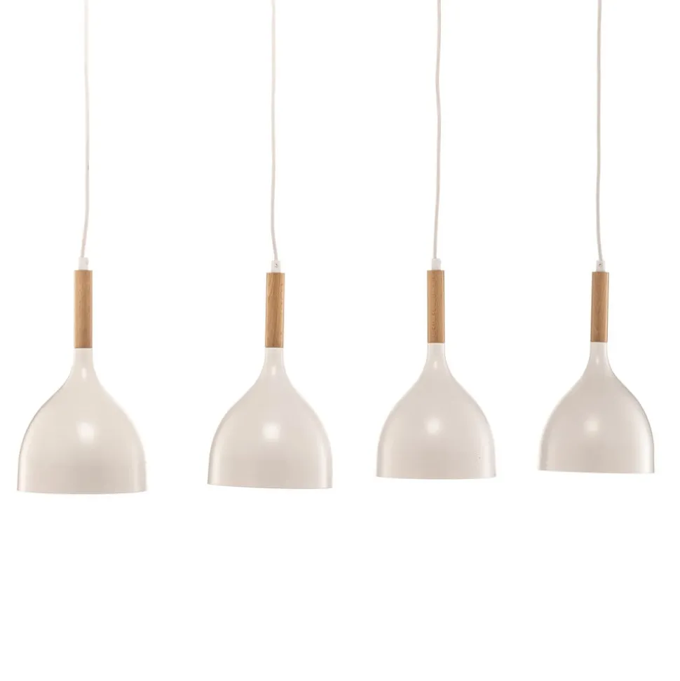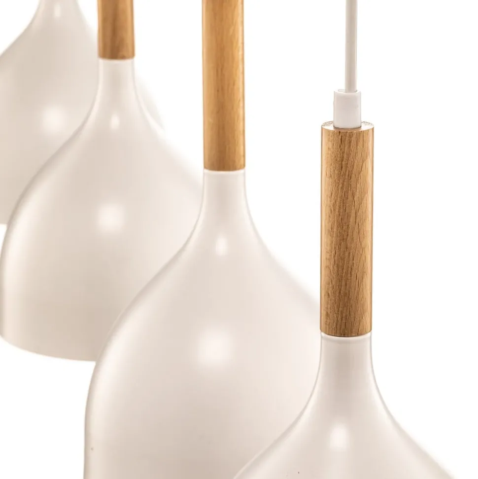 De hanglamp Noak combineert een tijdloos design met de warmte van natuurlijke materialen. Deze lamp is gemaakt van hoogwaardig metaal en hout en past naadloos in verschillende woonomgevingen, of het nu in de woonkamer of in de eetkamer is. De combinatie van een witte afwerking en licht hout geeft elke ruimte een uitnodigende en tegelijkertijd moderne sfeer.