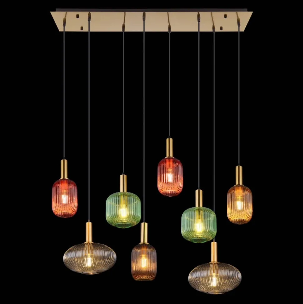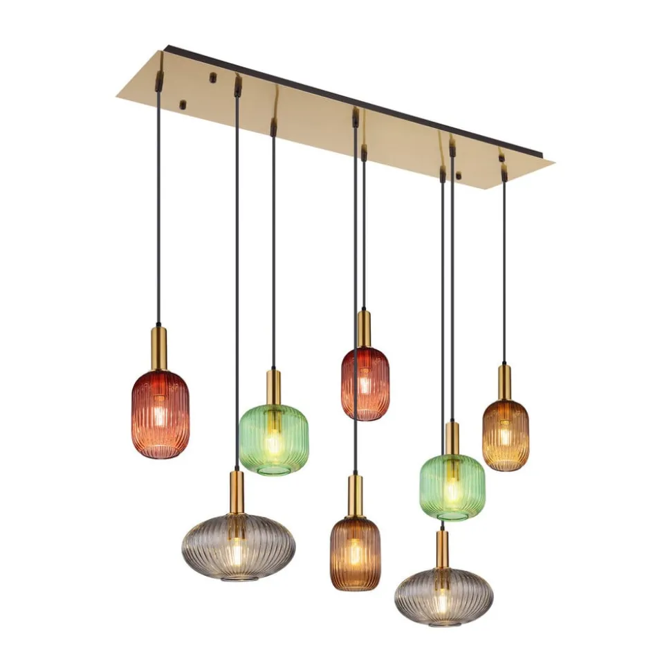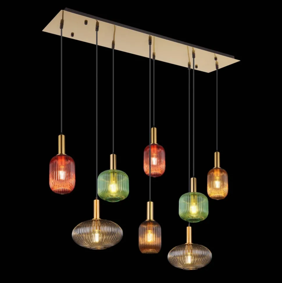 Hanglamp Normy, lengte 125 cm, kleurrijk, glas, 8-lamps.