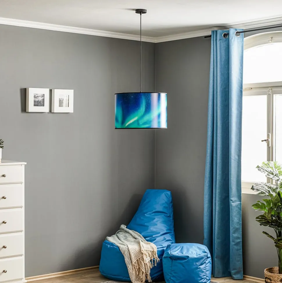 Hanglamp Print L Hemel met poollicht turquoise: harmonieuze kleuren voor een stijlvolle sfeer
