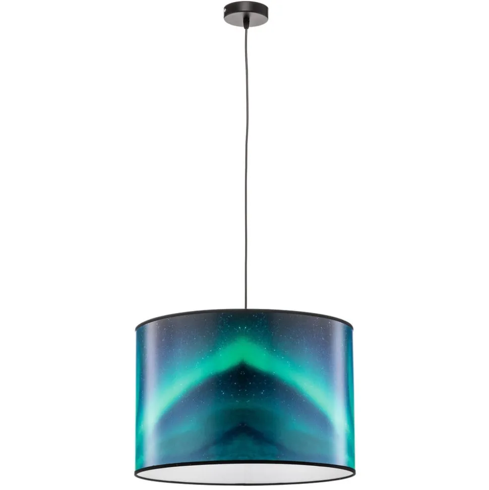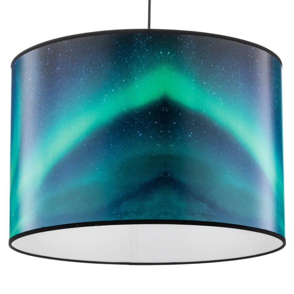 De hanglamp Print L Hemel met poollicht turquoise brengt met zijn harmonieuze kleurencombinatie van zwart en turquoise een fascinerende sfeer in elke ruimte. De lamp is gemaakt van hoogwaardig PVC en past naadloos in de stijl van een jonge wooninrichting en zet stijlvolle accenten in de woonkamer, kinderkamer of eetkamer. De lamp is gemaakt in Europa en overtuigt door zijn bijzondere kwaliteit en afwerking.