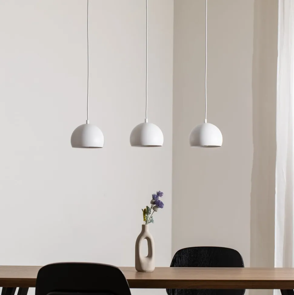 De hanglamp Sool combineert modern Scandinavisch design met functionele veelzijdigheid. Gemaakt van hoogwaardig metaal en uitgevoerd in elegant wit, past hij naadloos in verschillende interieurstijlen. De 3-lamps constructie zorgt voor een gelijkmatige verlichting van de woonkamer, eetkamer of keuken en creëert een uitnodigende sfeer.