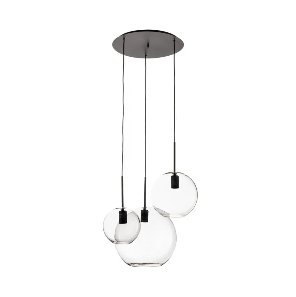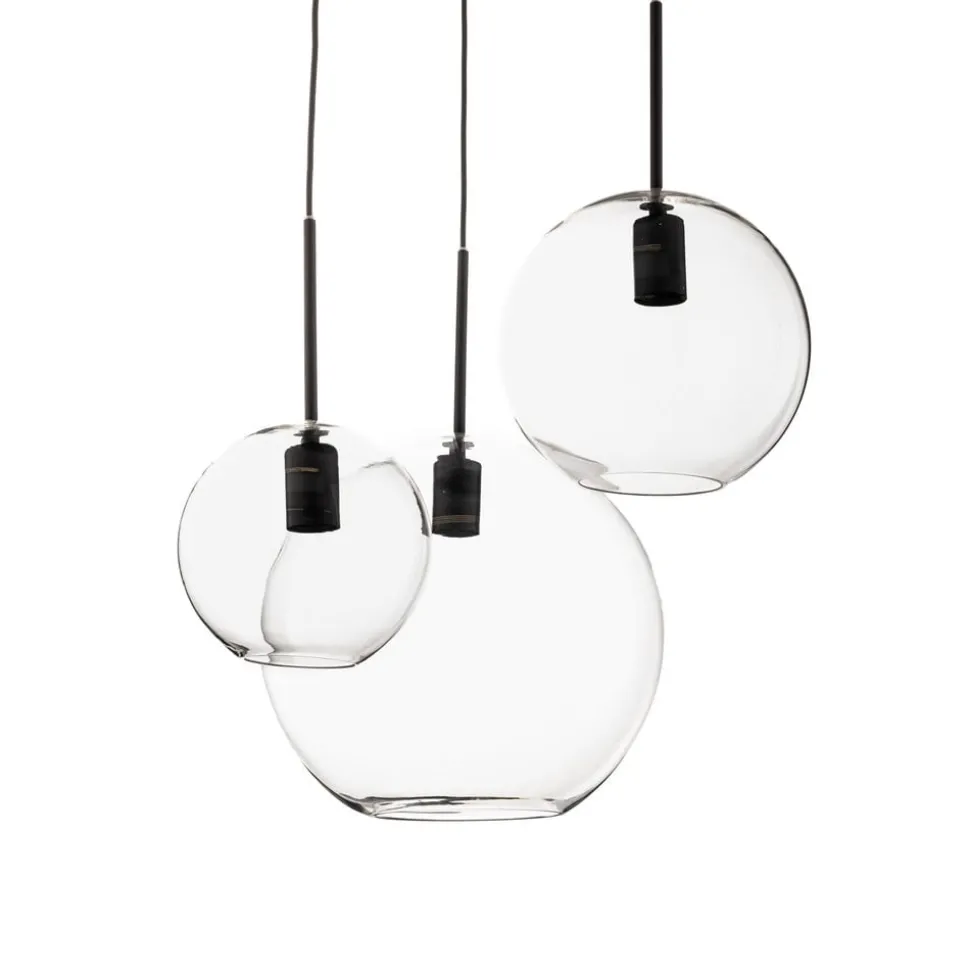 De hanglamp Sphere, 3-lamps, combineert modern design met hoogwaardige materialen zoals glas en staal. Deze lamp, vervaardigd in Europa, valt op door zijn transparante en zwarte kleurstelling, die naadloos in verschillende interieurconcepten kan worden geïntegreerd. Of het nu in de woonkamer, hal of eetkamer is, de hanglamp zet stijlvolle accenten en creëert een uitnodigende sfeer.