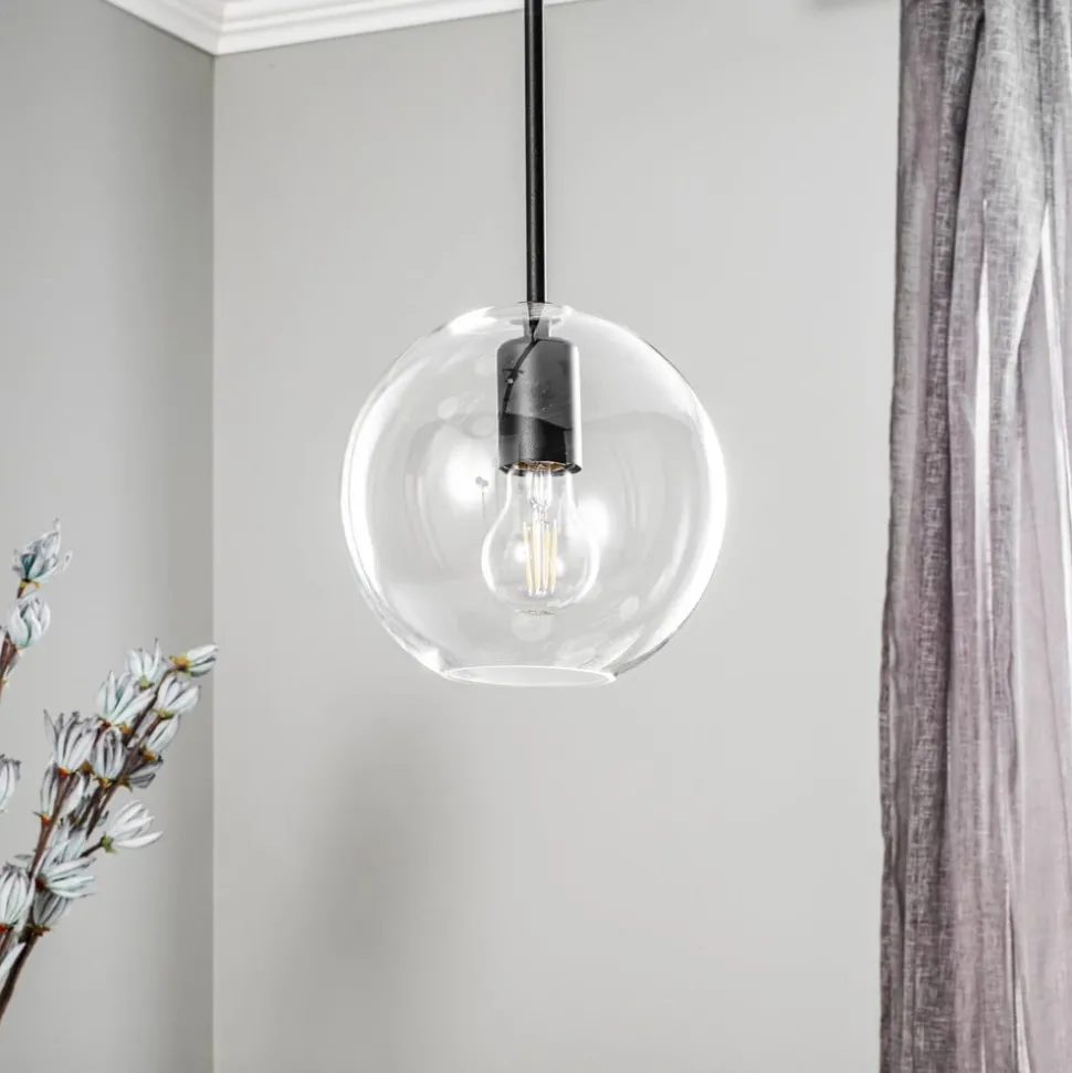 De hanglamp Sphere M met glazen kap combineert een modern design met hoogwaardige materialen om elke ruimte een bijzondere touch te geven. Deze lamp is gemaakt van glas en staal en straalt tijdloze elegantie uit en past naadloos in verschillende interieurstijlen. De combinatie van transparant en zwart zorgt voor een harmonieuze en tegelijkertijd opvallende uitstraling die zowel in de woonkamer als in de eetkamer of hal indruk maakt.