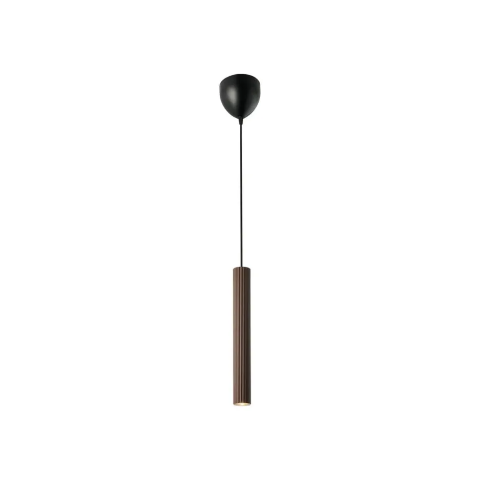 Hanglamp Vico met lange aluminium kap De serie Vico lampen belichaamt Scandinavische elegantie met haar minimalistische, gestroomlijnde ontwerp. Het geribbelde oppervlak van de lange, cilindervormige kap creëert een subtiel maar interessant effect. De slanke Vico hanglamp spot neerwaarts licht en kan heel goed worden gebruikt met meerdere lampen op een rij, in een groep of als een enkele lamp om bepaalde elementen in een kamer te benadrukken.