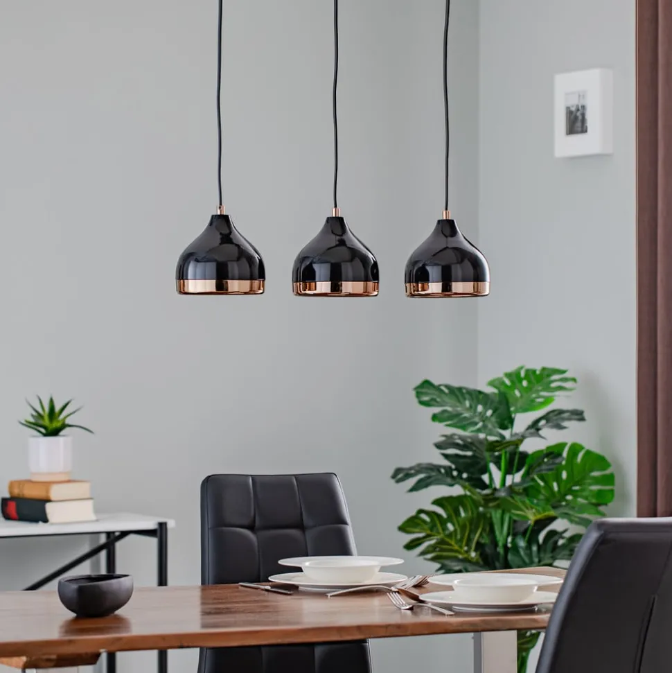 Hanglamp Yildo 6877 3-lamps lineair zwart/koper