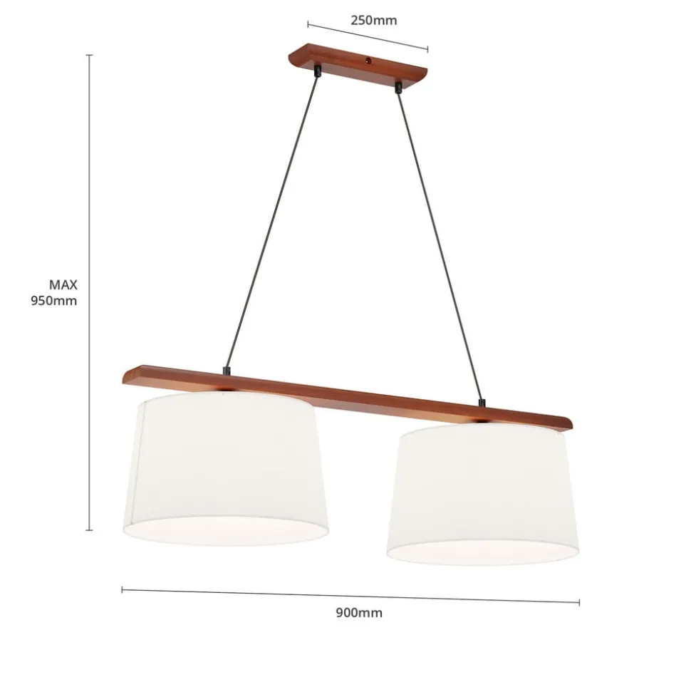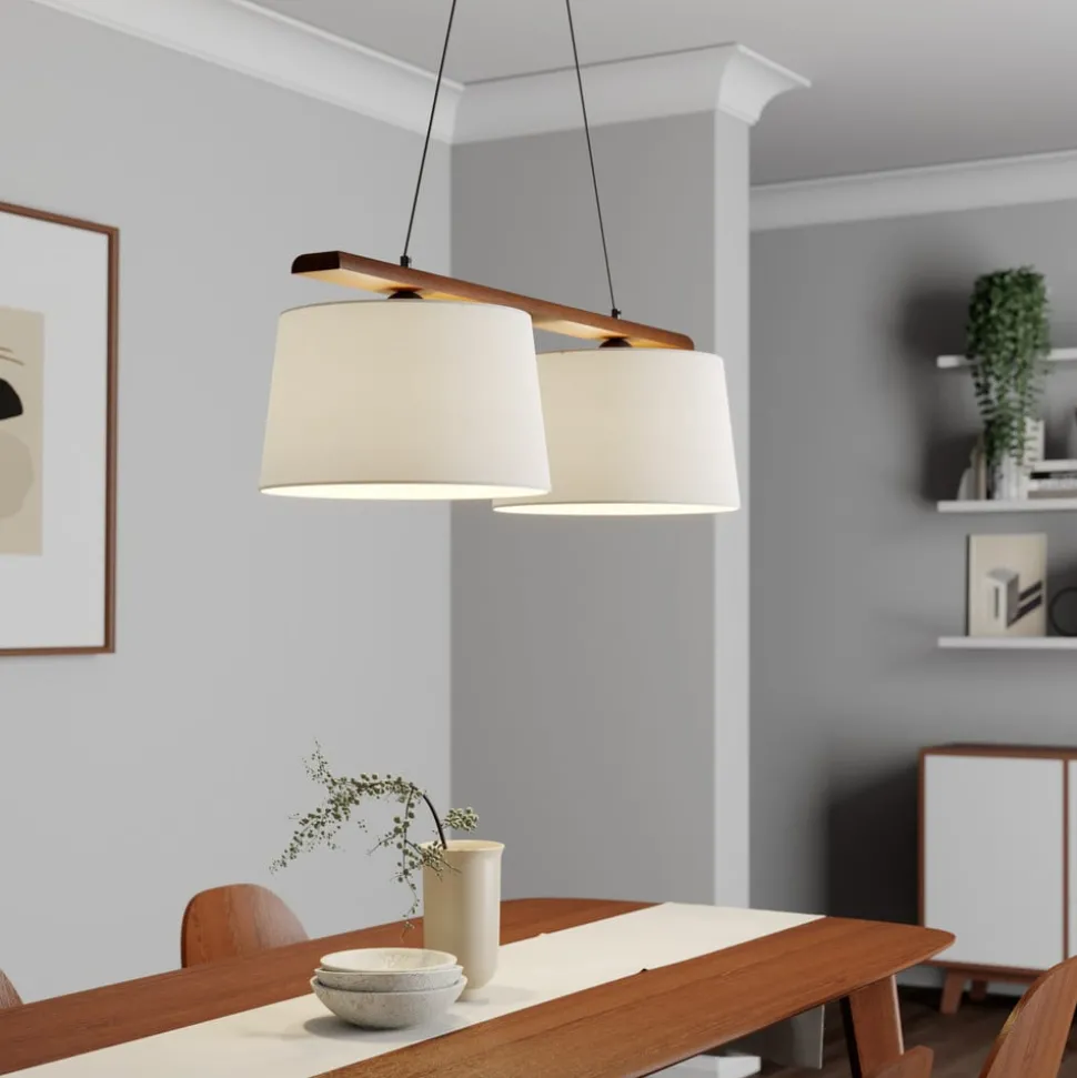 Hanglamp Zweden, antiek wit, textiel, walnoot, 2-lamps