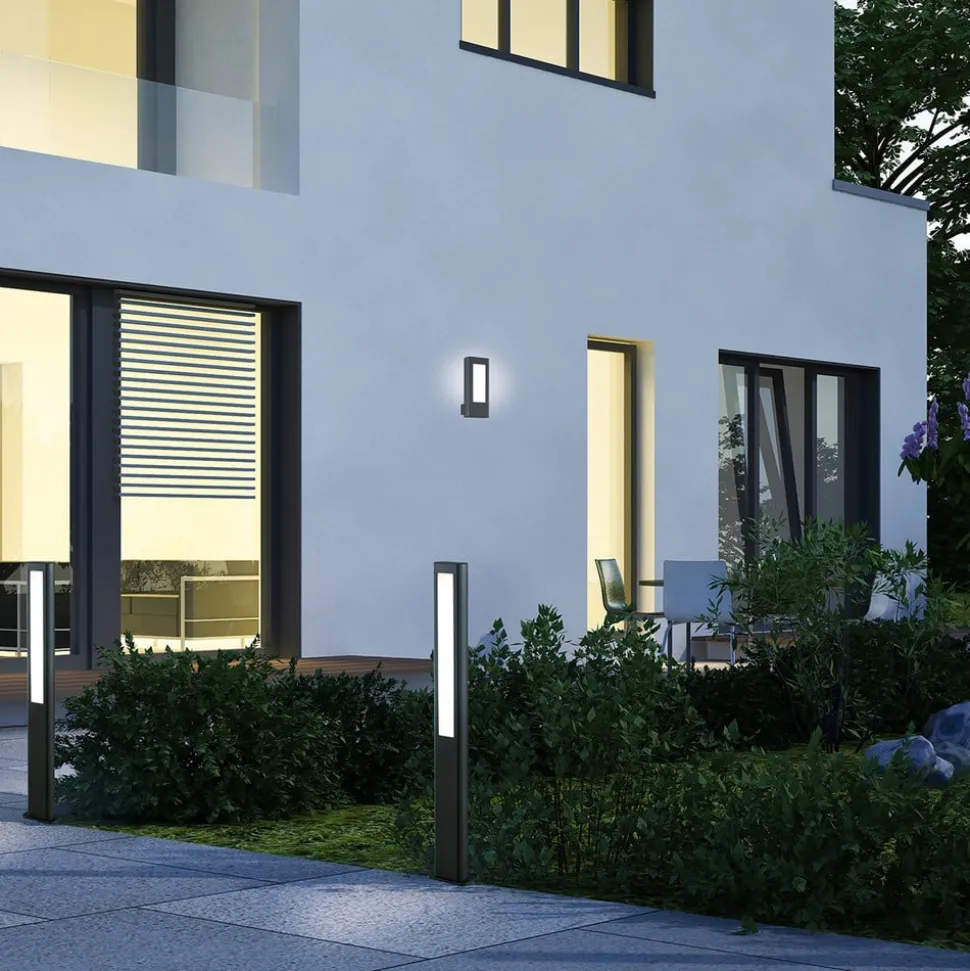 De look van de uit druk gegoten aluminium en acryl vervaardigd LED outdoor wandlamp Rhine wordt door rechtlijnigheid en tijdloze moderniteit gekenmerkt. Een lichtbron voor de buitenverlichting, die met veel gevelstijlen gecombineerd kan worden. De beide ingebouwde LED’s leveren een warm wit stralend licht, dat de omgeving zacht verlicht en zeer aanlokkelijk werkt. Met beschermingsgraad IP54 is de LED outdoor wandlamp Rhine ook bestand tegen sterkere weersinvloeden.