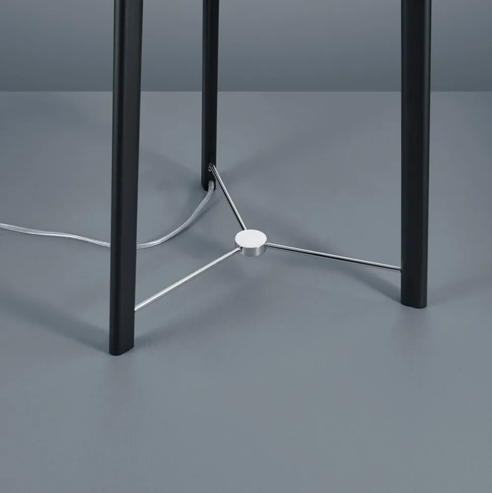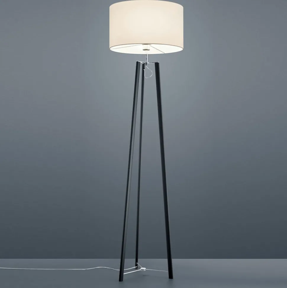 Een trendy metalen frame bestaande uit drie poten in matzwarte kleur en een cilindervormige kap van chintz – dat zijn de onderdelen van de moderne vloerlamp Certo van Helestra. De Certo is een decoratieve en tijdloze lichtbron voor veel woonkamers, die alleen verticaal, direct en zijdelings rondom de lamp licht uitstraalt. Certo is en wordt uitgerust met een gebruiksvriendelijke voetschakelaar op de kabel.