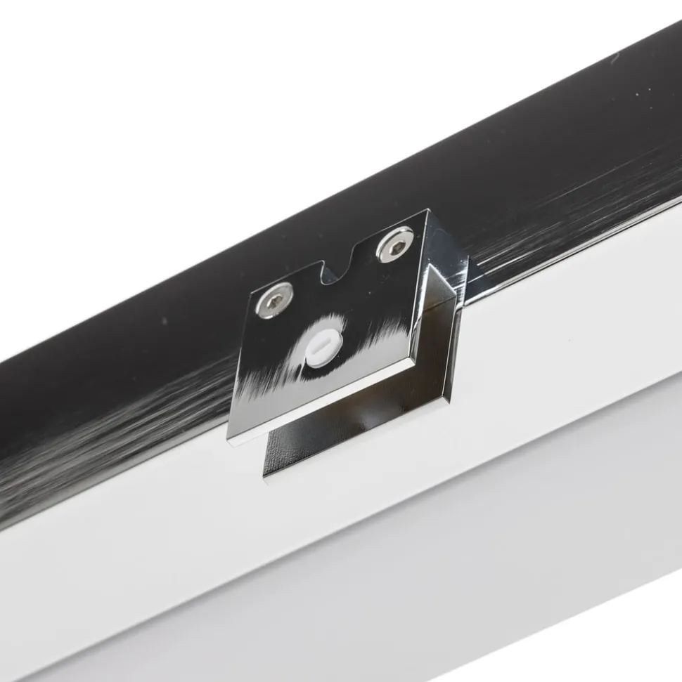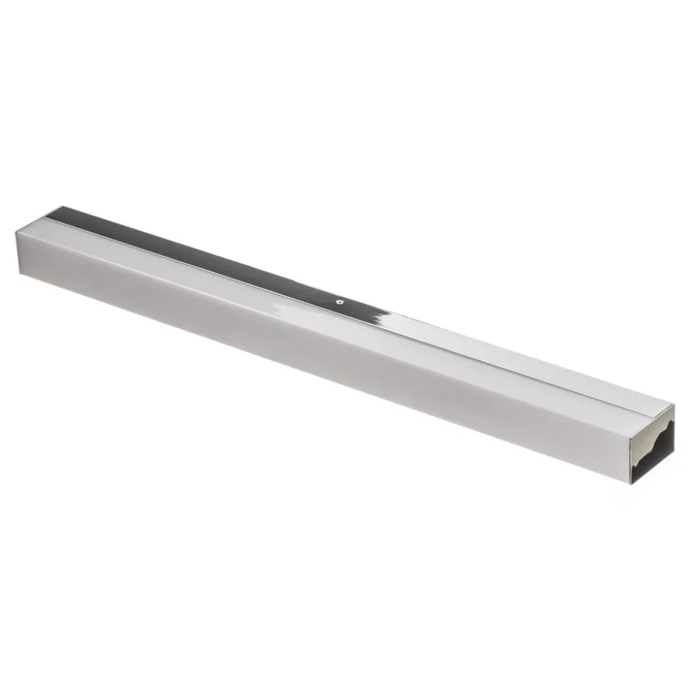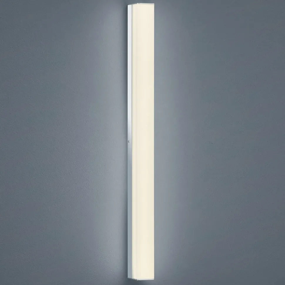 Een eenvoudig ontwerp in een vierkante vorm kenmerkt de LED wandlamp Lado, die door het verchroomde metaal en de gesatineerde diffuser in elke badkamer harmonieus kan worden ingevoegd. Of de lamp nu verticaal aan de zijkant van de spiegel als paar wordt aangebracht of als individuele lamp horizontaal boven de spiegel wordt gemonteerd – De LED spiegellamp Lado garandeert een zeer aangename verlichting van de omliggende gebieden met warmwit licht (2.900 k).
