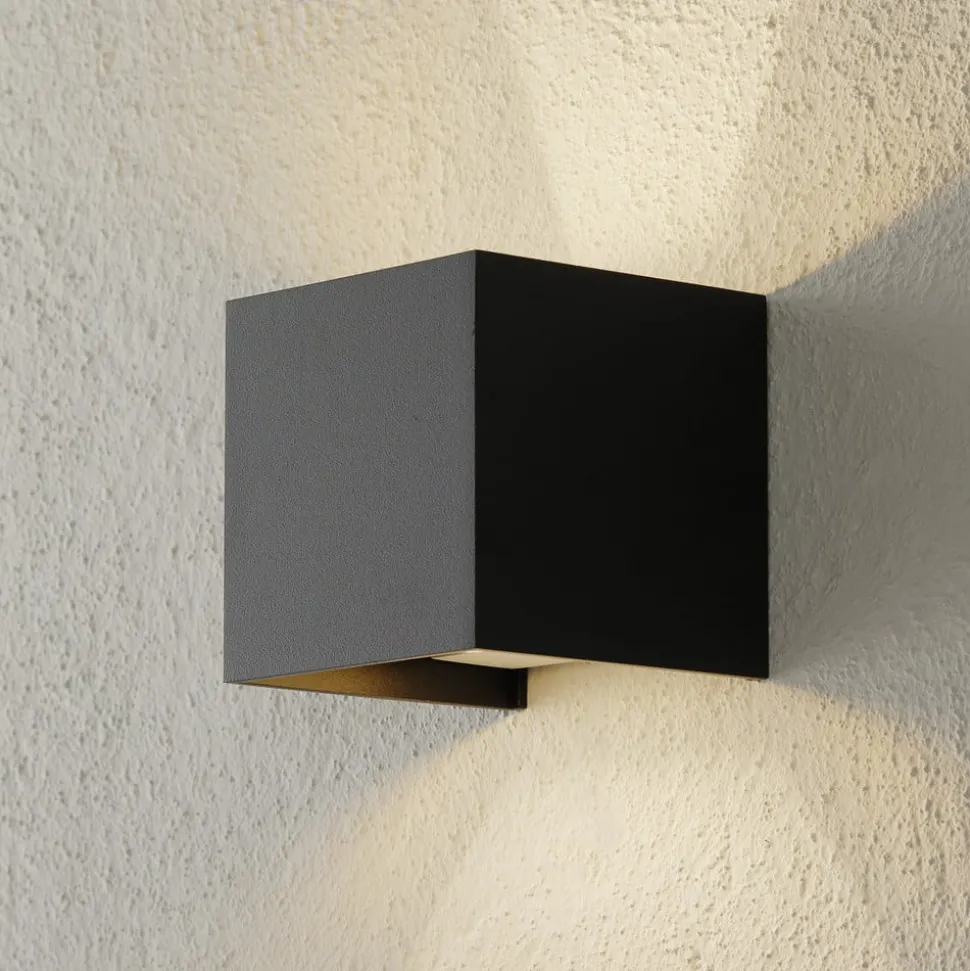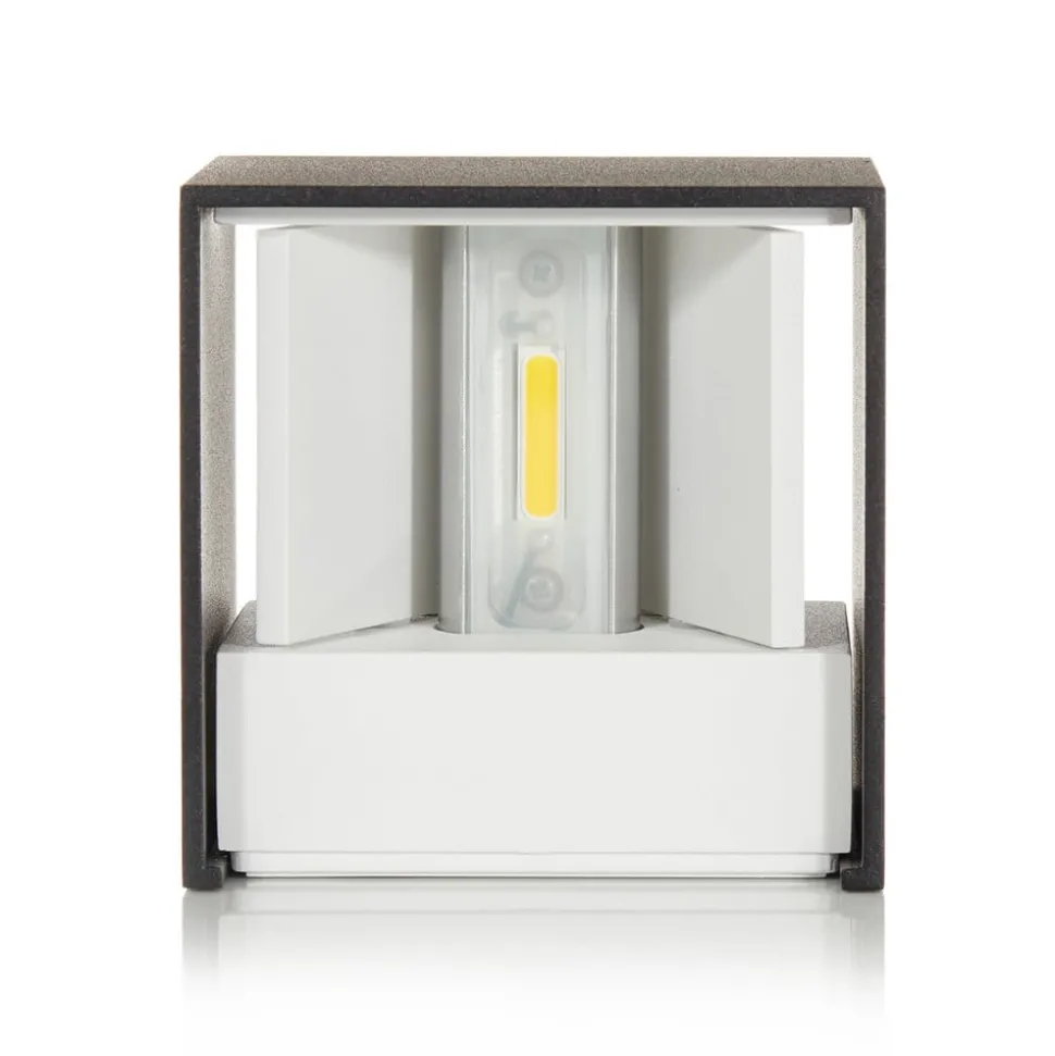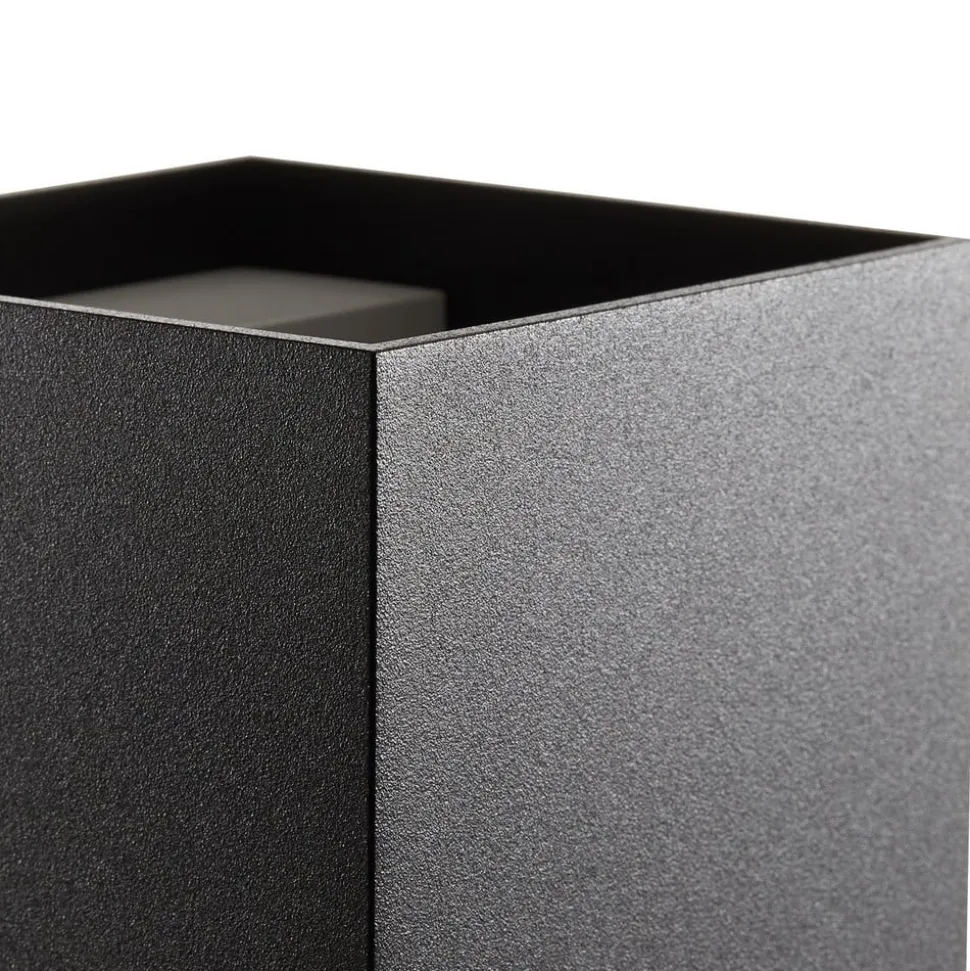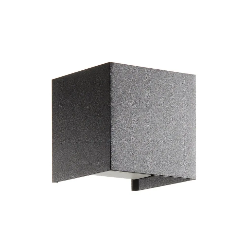 Gerichte LED buiten wandlamp met lichtbundel Buitenverlichting moet niet alleen een groot gebied verlichten. Lichtkunst is ook uiterst aantrekkelijk en belooft een buitengewoon effect voor buitenruimtes. Want het licht van deze onopvallende aluminium buitenwandlamp valt niet slechts in één richting. Een smalle lichtstraal valt vanuit het kubusvormige armatuur naar boven en een wijd verspreide lichtstraal verlicht het lager gelegen gebied. Dit maakt het armatuur ideaal om bijvoorbeeld de deur te verlichten. In de grafietkleur heeft de buitenlamp ook een discreet effect.
