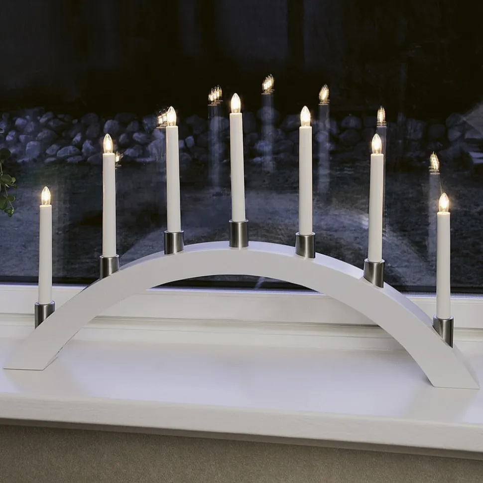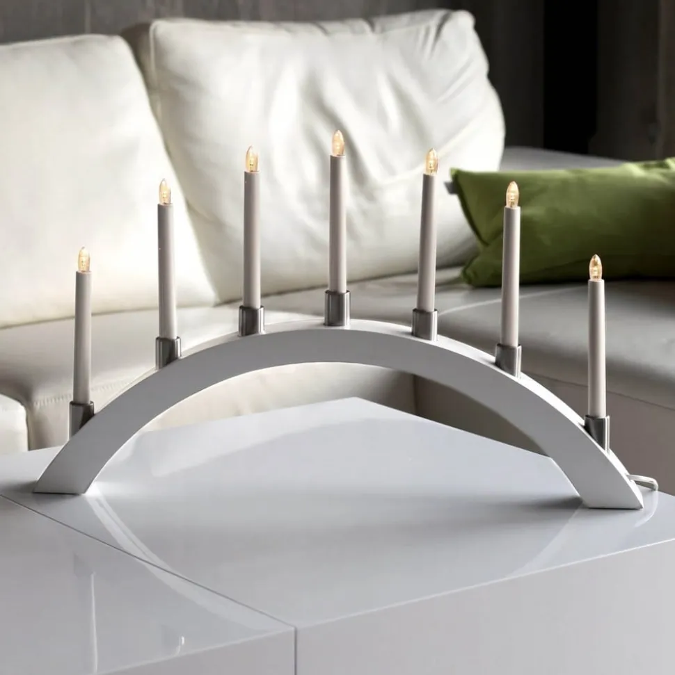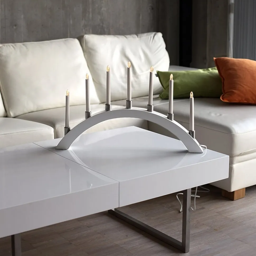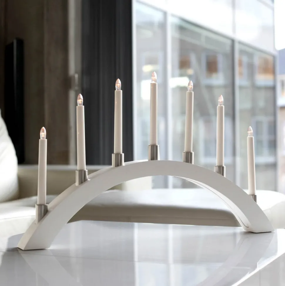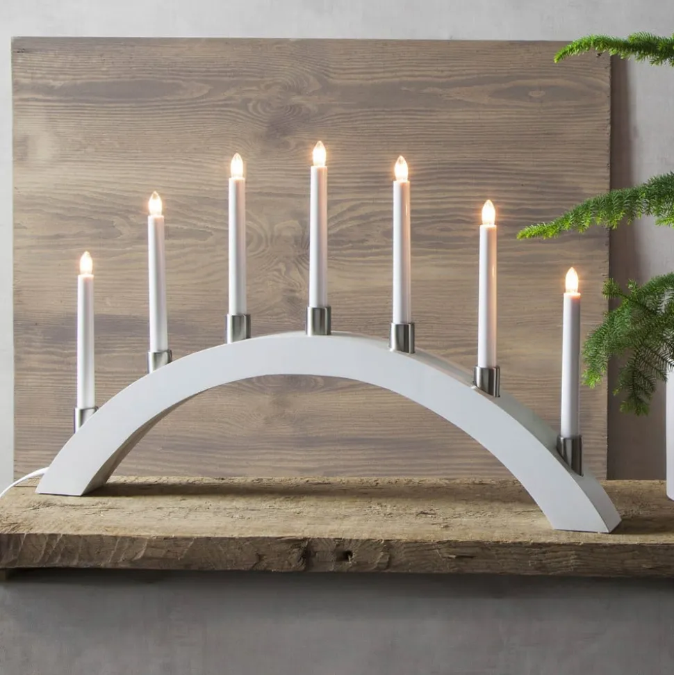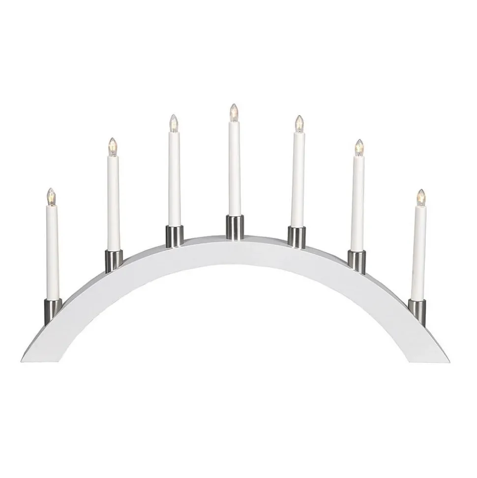 Fascination LED lichtboog Tall Het bijzondere aan deze lichtboog is dat de zeven kaarsen zijn voorzien van LED-lampjes, waardoor de hele lichtboog in totaal maar 0,7 watt nodig heeft. Zuiniger en mooier kan kerstverlichting bijna niet zijn!