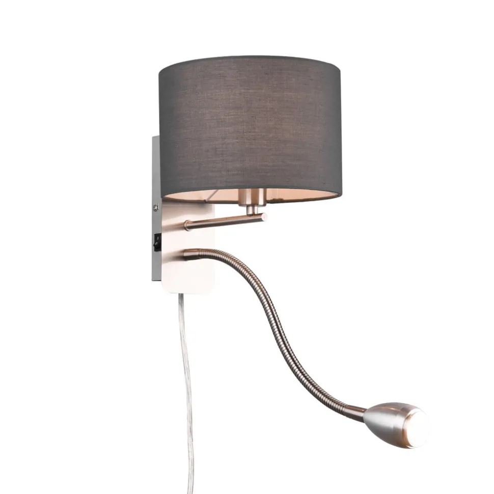 Hotel wandlamp met LED leeslampje, rond, grijs