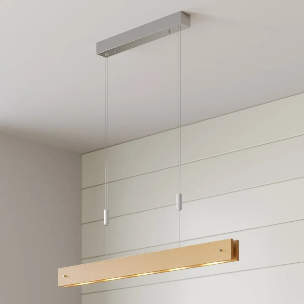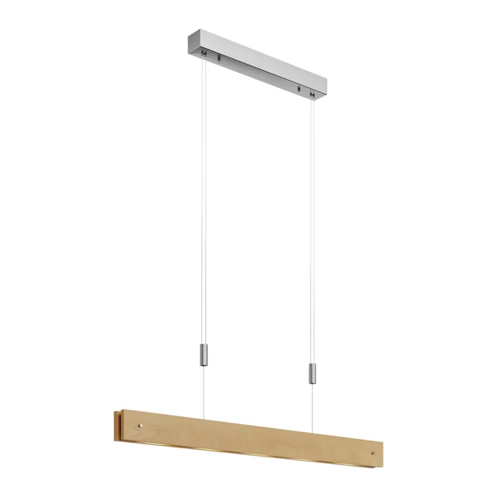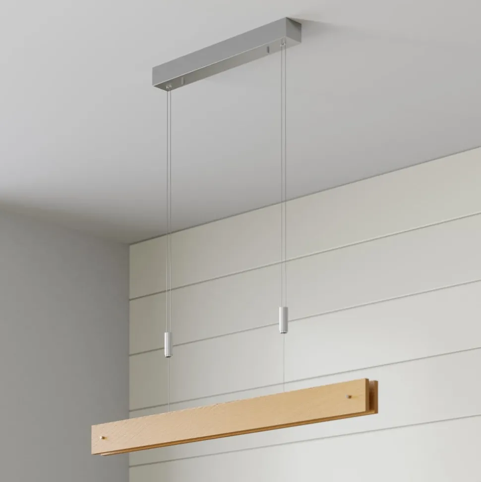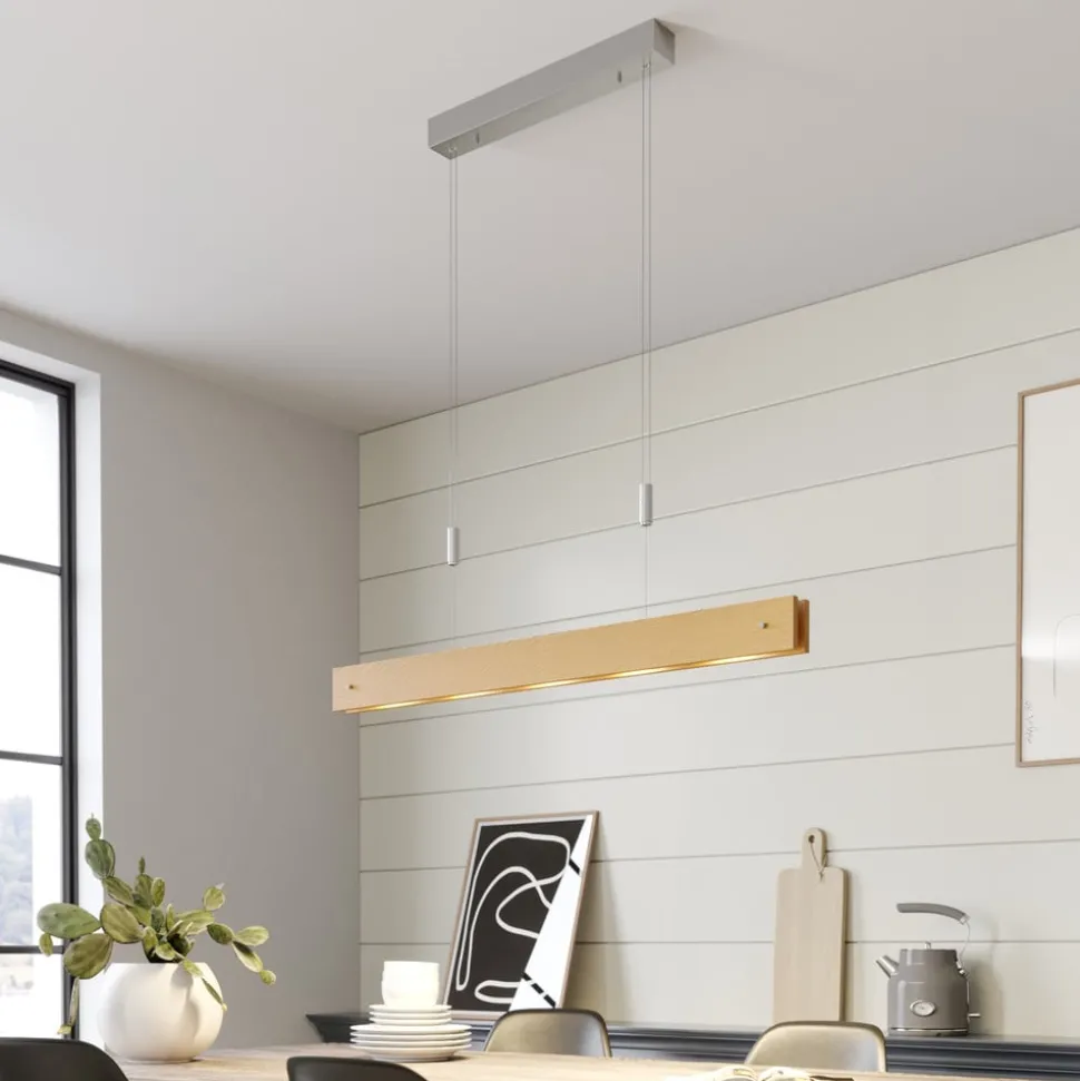 Elegante houten LED hanglamp Karinja met touchdimmer en in hoogte verstelbaar mechanisme