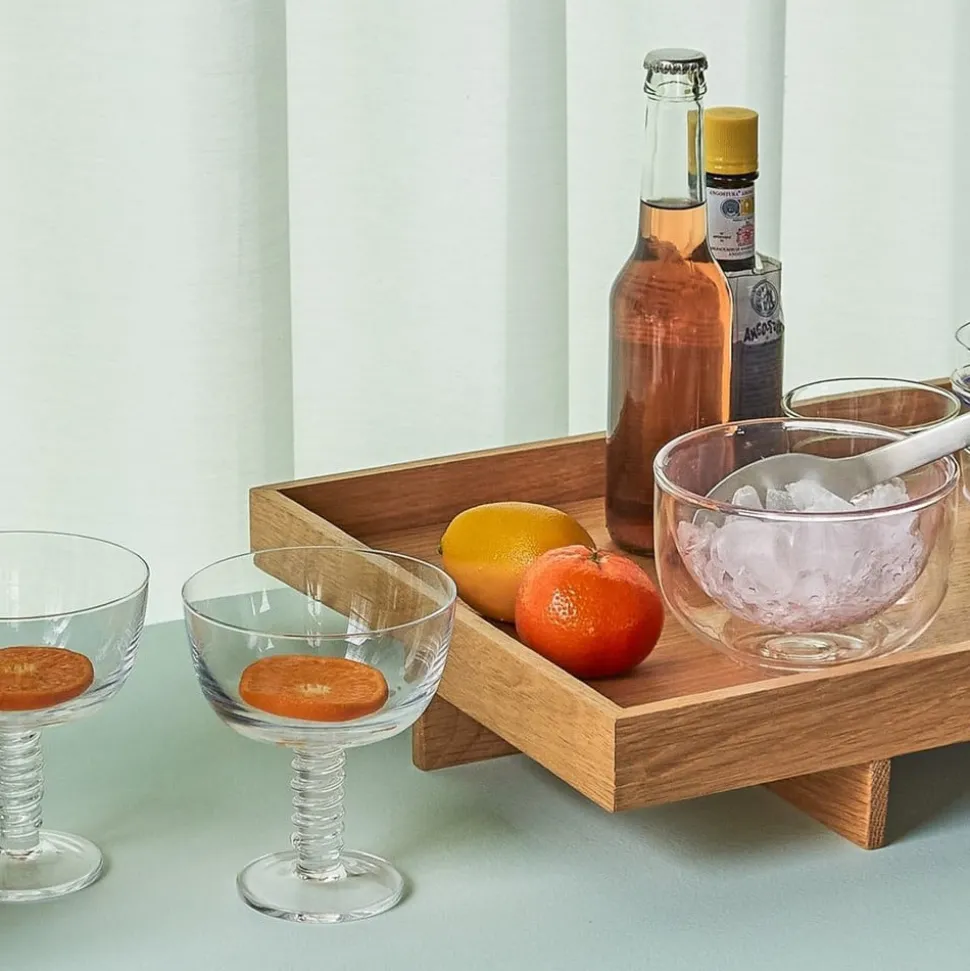 Rechthoekig dienblad van eikenhout en MDF Het dienblad is gemaakt van eikenhout en wordt gekenmerkt door de uniek gevormde onderkant. Het kan in veel kamers in je huis worden gebruikt en voegt een modern tintje toe met behoud van een verfijnde uitstraling.
