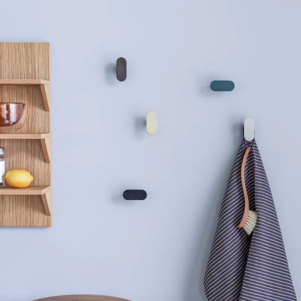 Enkele kapstokhaak Piccolo van ijzer De haak is gemaakt van ijzer, de kleur is gebronsd messing. De vorm is eenvoudig en minimalistisch en neemt weinig ruimte in.