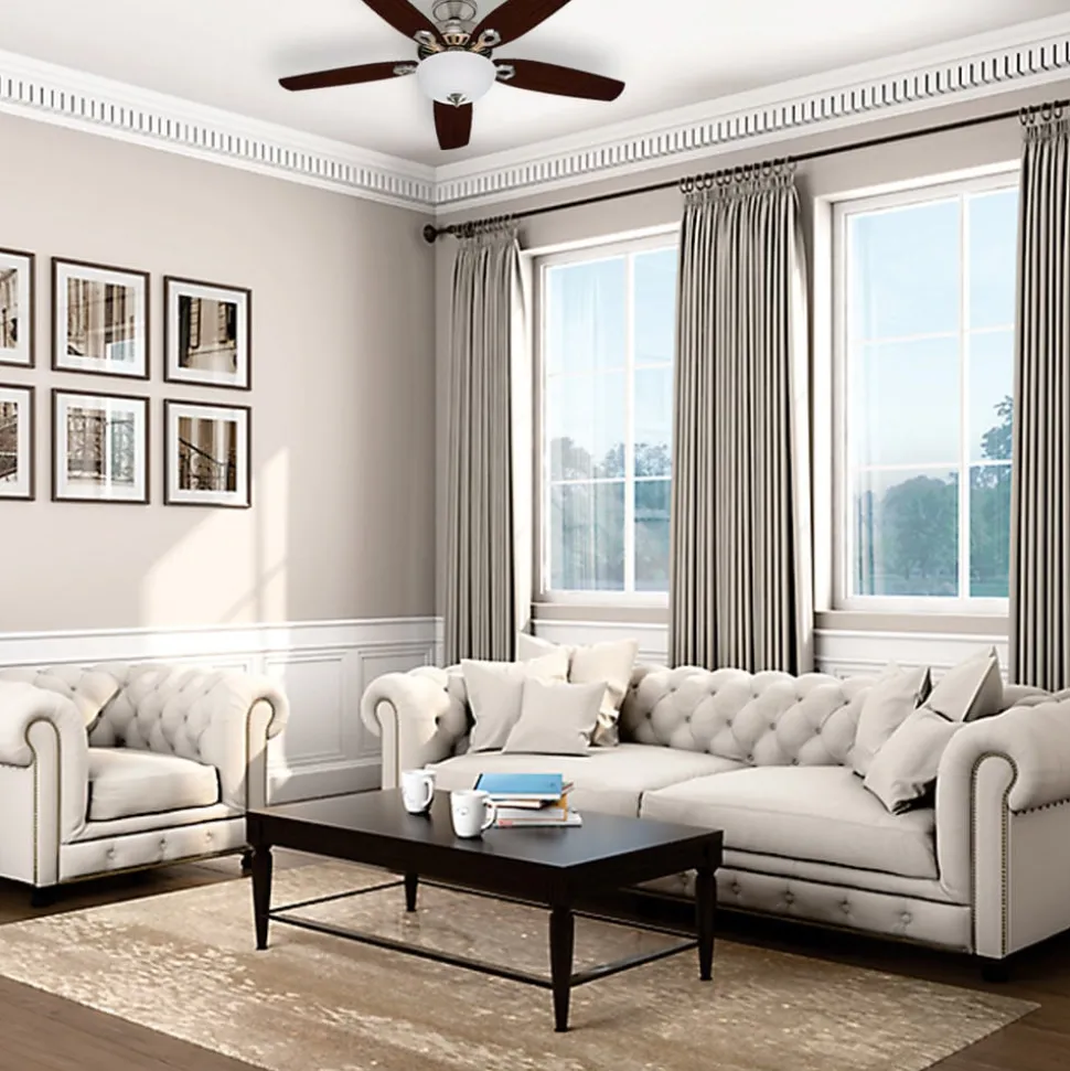 De verlichte plafondventilator Builder Deluxe is ook geschikt voor slaapkamers dankzij de bijzonder stille Whisperwind® motor.