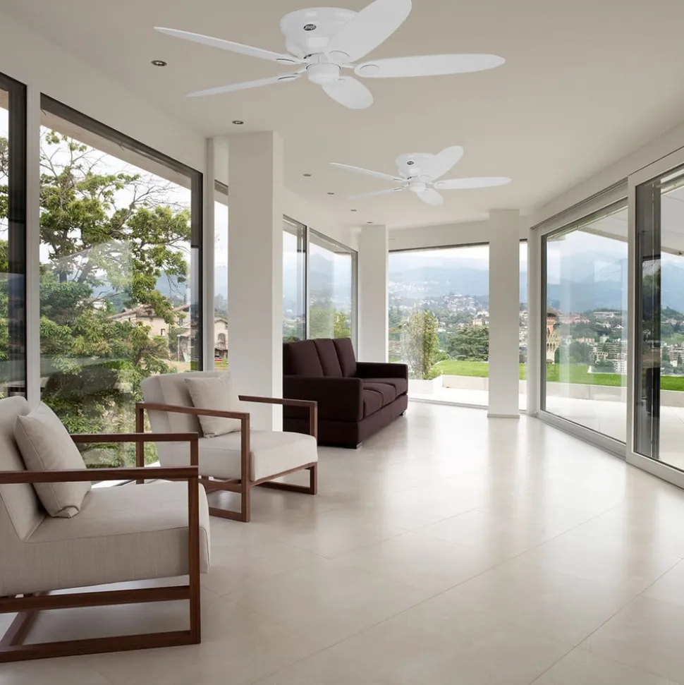 In wit: vijfvleugelige plafondventilator Low Profile III