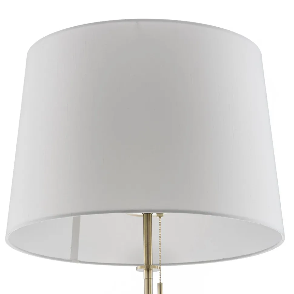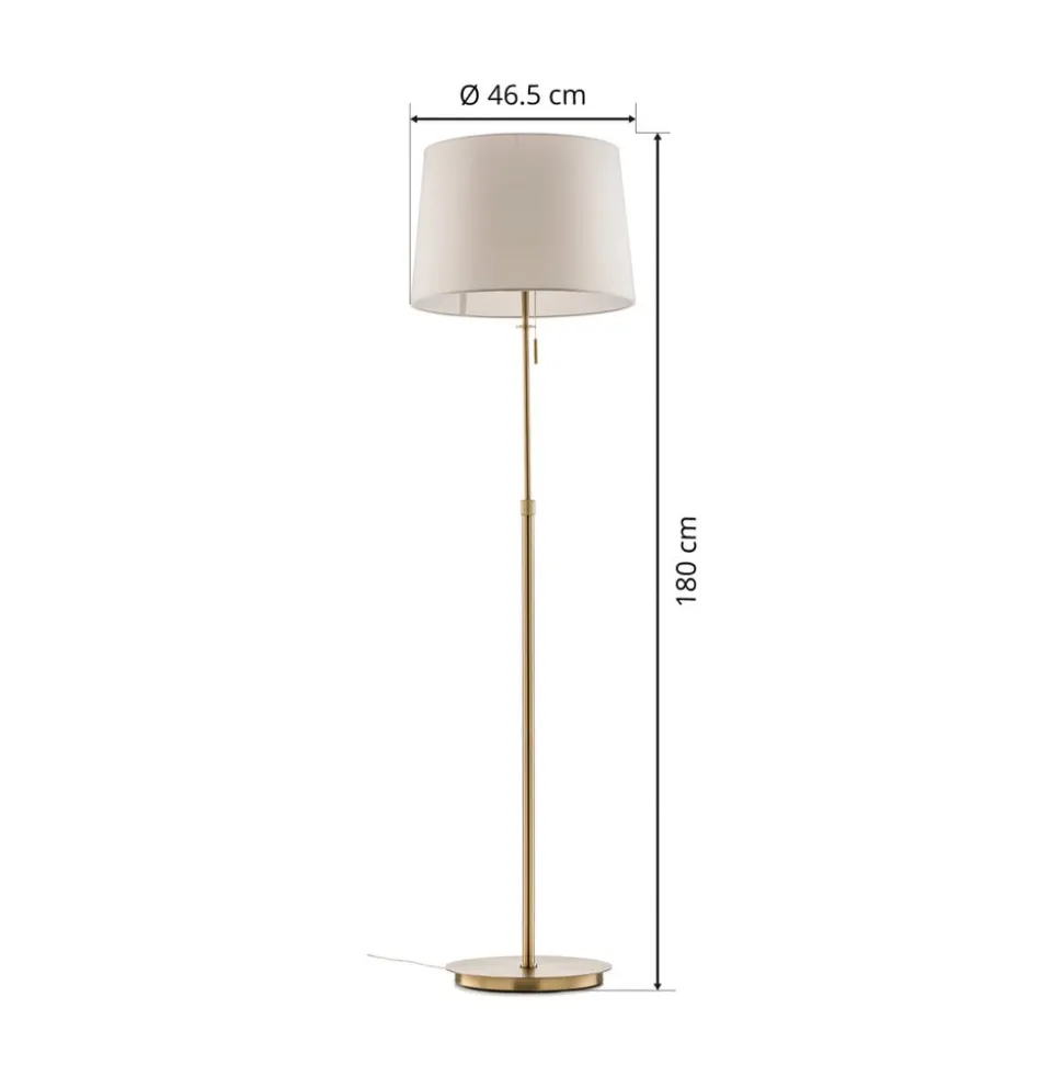 De optiek van deze stijlvolle lamp is geïnspireerd op klassieke modellen en boeit met een tijdloze elegante toets. Het ontwerp combineert vakkundig smalle lijnen met effectrijke rondingen, waardoor de witte stof een vruchtbare dialoog aangaat met de matte oppervlakken van het metalen frame. De vloerlamp Lyon is voor extra flexibiliteit uitgerust met verschillende praktische functies. Aan de ene kant kunnen de lichtbronnen afzonderlijk worden ingeschakeld om de lichtomstandigheden aan te passen aan de context. De bediening gebeurt nostalgisch en comfortabel door middel van een trekschakelaar. Aan de andere kant is de vloerlamp Lyon meervoudig in hoogte verstelbaar, waarbij de hoogte traploos kan worden aangepast tussen 140 cm en 180 cm.