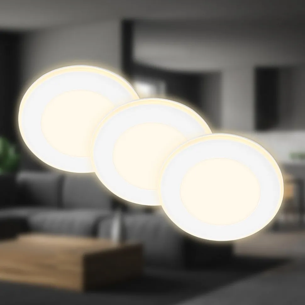 Gima LED inbouwlamp set met drie ronde lampen met nachtlampfunctie Deze set van 3 inbouwlampen is geschikt voor woonkamers, keukens, gangen en slaapkamers. De lampen kunnen met de wandschakelaar in verschillende standen/helderheden worden geschakeld: alles aan, alleen rand aan, alleen midden aan, alles uit. Of je nu een zacht nachtlampje nodig hebt voor de late uurtjes of heldere verlichting voor alledaagse taken, deze inbouwlamp geeft je de flexibiliteit die je nodig hebt. De toewijding aan duurzaamheid is niet alleen duidelijk in de energiezuinige verlichting, maar ook in de duurzame verpakking die de ecologische voetafdruk van het product minimaliseert.