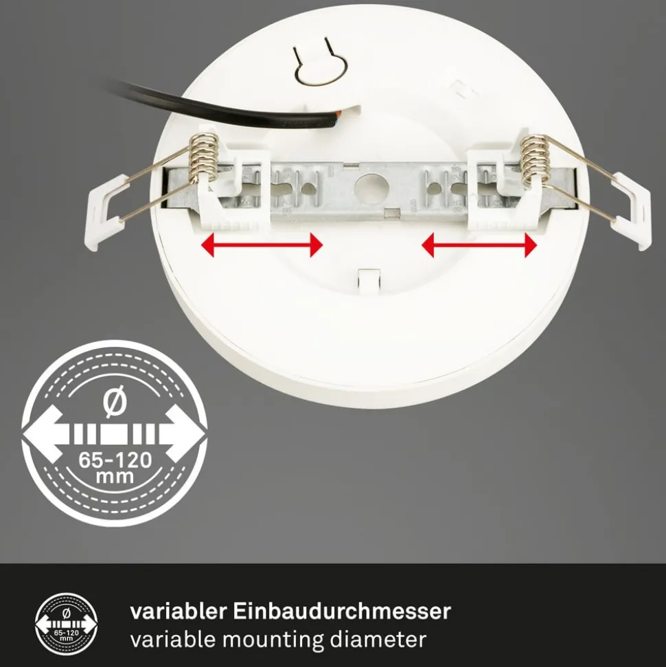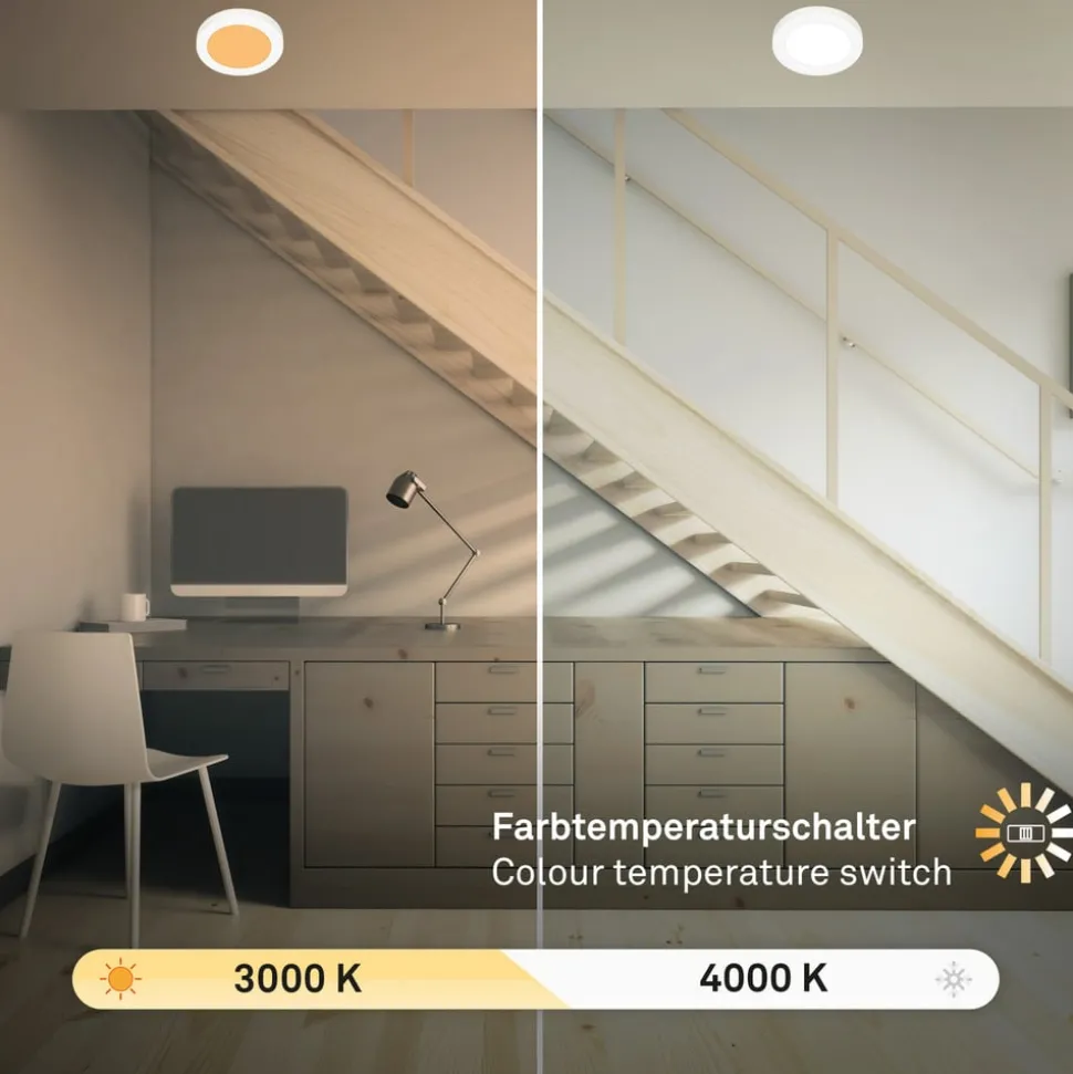 LED-inbouwarmatuur 7609 met instelbare lichtkleur en flexibele uitsparing De LED-inbouwarmatuur 7609 is niet alleen geschikt voor nieuwe installaties, maar ook perfect als vervanging voor een groot aantal verschillende inbouwarmaturen, omdat hij in veel bestaande inbouwopeningen past. Dankzij verschuifbare klemveren kan het worden aangepast aan veel bestaande nisopeningen. Het armatuur van kunststof biedt ook twee verschillende lichtkleuren die vóór installatie kunnen worden geselecteerd via een schakelaar aan de achterkant van het armatuur. De keuze is tussen warm wit licht met een kleurtemperatuur van 3.000 K of universeel wit licht met 4.000 K