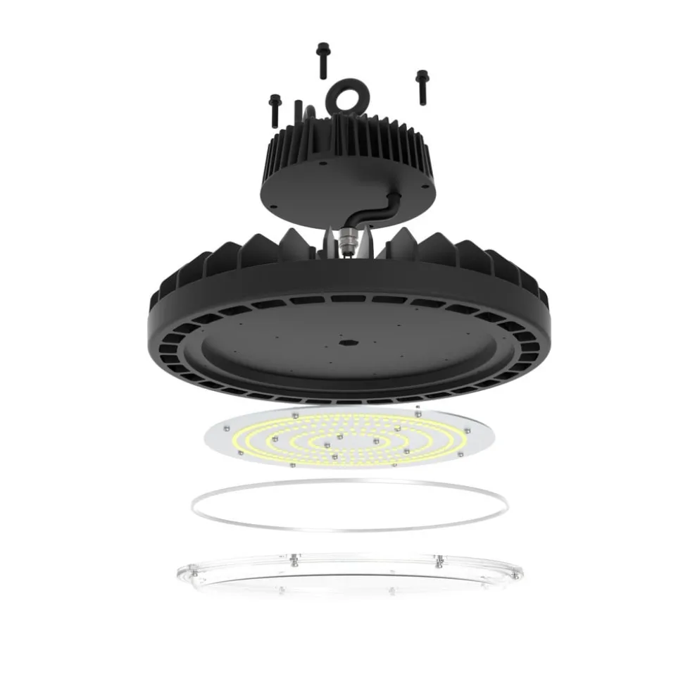 Dimbare CORE 3.0 BASELine LED-hoogbouwarmatuur met robuuste gegoten aluminium behuizing De CORE 3.0 BASELine LED-hoogbouwarmatuur is ideaal voor de verlichting van industriële omgevingen zoals hoogbouwmagazijnen, fabriekshallen, tankstations en werkplaatsen. Dankzij beschermingsgraad IP65 is de zwarte behuizing van spuitgietaluminium zowel stofdicht als beschermd tegen waterstralen. Het licht van de efficiënte LED’s kan worden gedimd via een 1-10V interface, wordt niet-verblindend uitgestraald en zorgt voor een degelijke verlichting van de hal. Bij de levering is ook een stalen veiligheidskabel inbegrepen.- Beschermingsklasse: IP65- Robuuste behuizing van gegoten aluminium – Dimbaar via 1-10V interface – 1 stalen veiligheidskabel bij de levering inbegrepen
