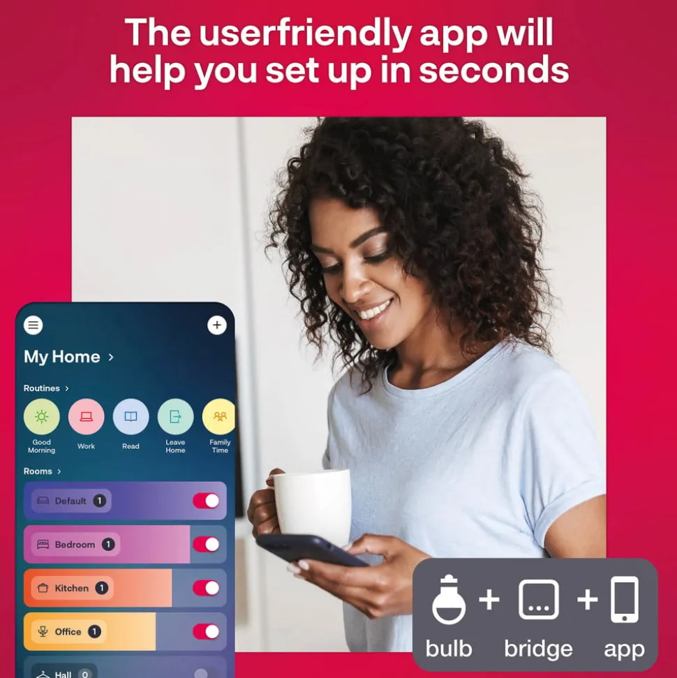Intelligente verlichtingsoplossing in een compleet pakket: De Smart Bulb Comfort starterset met 2 LED lampen met CCT-functie, bridge en afstandsbediening De Smart Bulb Comfort starterset voor E27 fitting biedt een uitstekende introductie tot slimme verlichting in huis. Je kunt tot 30 lampen tegelijk bedienen via de meegeleverde bridge. Zodra alle lampen en de afstandsbediening erop zijn aangesloten, kan alles gemakkelijk vanaf de bank worden geschakeld met de app, spraakassistent of afstandsbediening. Er wordt ook een afstandsbediening op batterijen (Innr Smart Button) meegeleverd, die dankzij de magnetische behuizing goed hecht op metalen oppervlakken. Als je hem niet aan de koelkast wilt bevestigen, kun je hem ook als een klassieke lichtschakelaar aan de muur bevestigen met de meegeleverde beugel. Deze smart home set wordt afgerond met twee E27 Smart Bulb Comfort LED lampen. Deze kunnen traploos worden gedimd van 100% tot 5%. Ook de lichtkleur kan traploos worden aangepast. Of het nu zeer aangenaam warmwit is voor ontspannende momenten of koeler universeel wit om te werken: Met de Smart Bulb Comfort starterset creëer je altijd de juiste verlichting voor de gewenste sfeer. Technische gegevens / compatibiliteit: – Lichtkleur instelbaar tussen warmwit (2.200 K) en universeel wit (5..000 K) – Traploos dimbaar (5% – 100%) – Brug en afstandsbediening zijn compatibel met ZigBee en WiFi-lampen van Innr – Magnetische afstandsbediening – Eenvoudig te bevestigen op metalen oppervlakken – Uitgebreide reeks functies in combinatie met de gratis Innr app Leveringsomvang: – 2 Smart Bulb Comfort E27 lampen – Brug met USB-C kabel en netadapter – Smart Button afstandsbediening met muurbeugel en batterij (1 x CR2032)