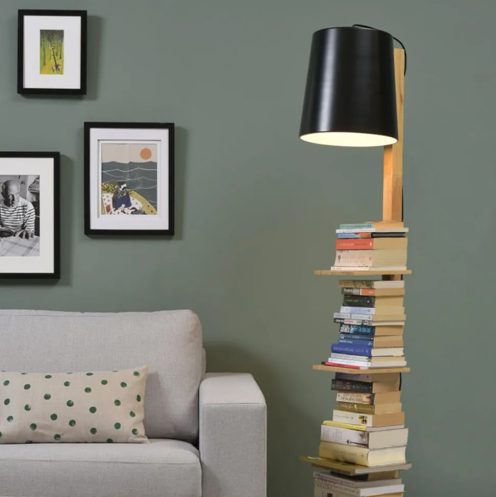 Met houten frame en planken – Vloerlamp CambridgeDe vloerlamp Cambridge is een stijlvol en praktisch accessoire voor in de woonkamer. Gemaakt door It’s about RoMi, een Nederlands bedrijf in de verlichtingsindustrie, is deze vloerlamp een echt kunstwerk. De vloerlamp heeft verschillende praktische planken om boeken en andere spullen op te bergen. De ijzeren kap, die rondom ondoorzichtig is, zorgt voor een neerwaarts en niet-verblindend licht, dat direct op de geplaatste voorwerpen wordt gericht. Gemaakt van ijzer en hout, is de vloerlamp robuust en duurzaam.Bijzonderheden van It’s about RoMi:- sinds 2010, gebruik van duurzame materialen- voor elke verkochte lamp wordt een boom geplant- daarmee wordt de CO2-uitstoot gecompenseerd- sinds 2019, samenwerking met Eden Reforestation Projects- elke lamp is geïnspireerd op een stad