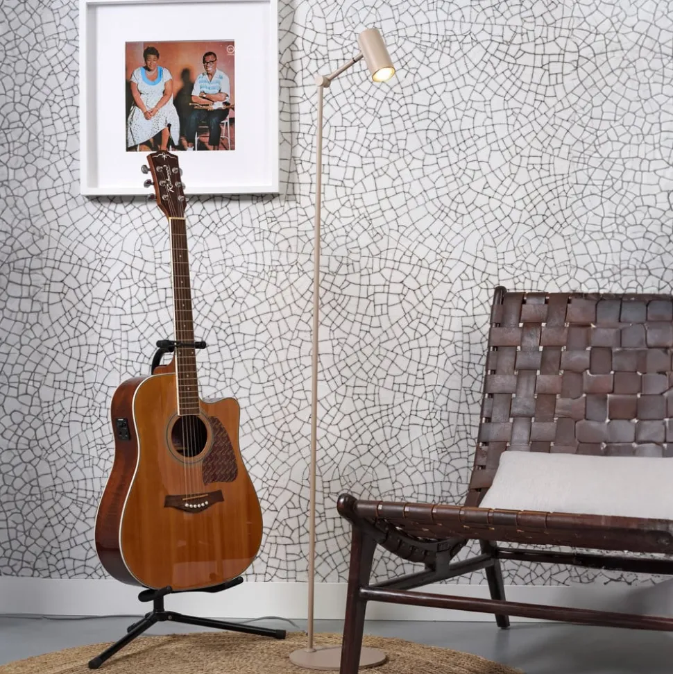 Zandkleurige vloerlamp Montreux met verstelbare spot De minimalistische vloerlamp Montreux is ideaal voor gerichte, directe verlichting, bijvoorbeeld bij het lezen in een leunstoel. De puntvormige, cilindervormige kap kan worden versteld en richt het directe licht precies daar waar het nodig is. Met zijn slanke ontwerp en volledig zwarte kleur is Montreux een discrete lichtbron voor de woonruimte. Met schakelaar (aan/uit) op de kap. Voor een GU10 lamp (niet inbegrepen, zie accessoires). Speciale kenmerken van It’s about RoMi: – Gebruik van duurzame materialen – voor elk verkocht armatuur wordt een boom geplant – dit compenseert de CO2-uitstoot – elk armatuur is geïnspireerd op een stad
